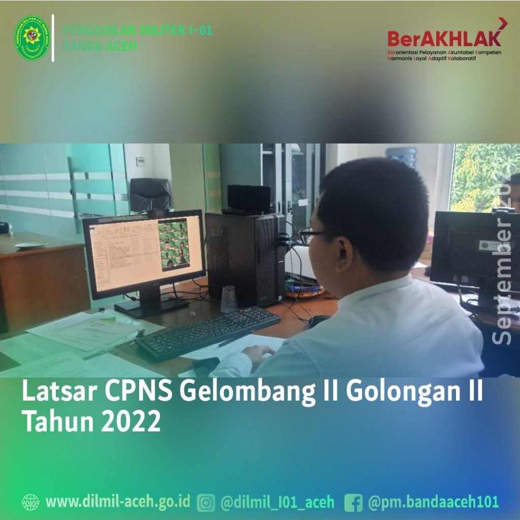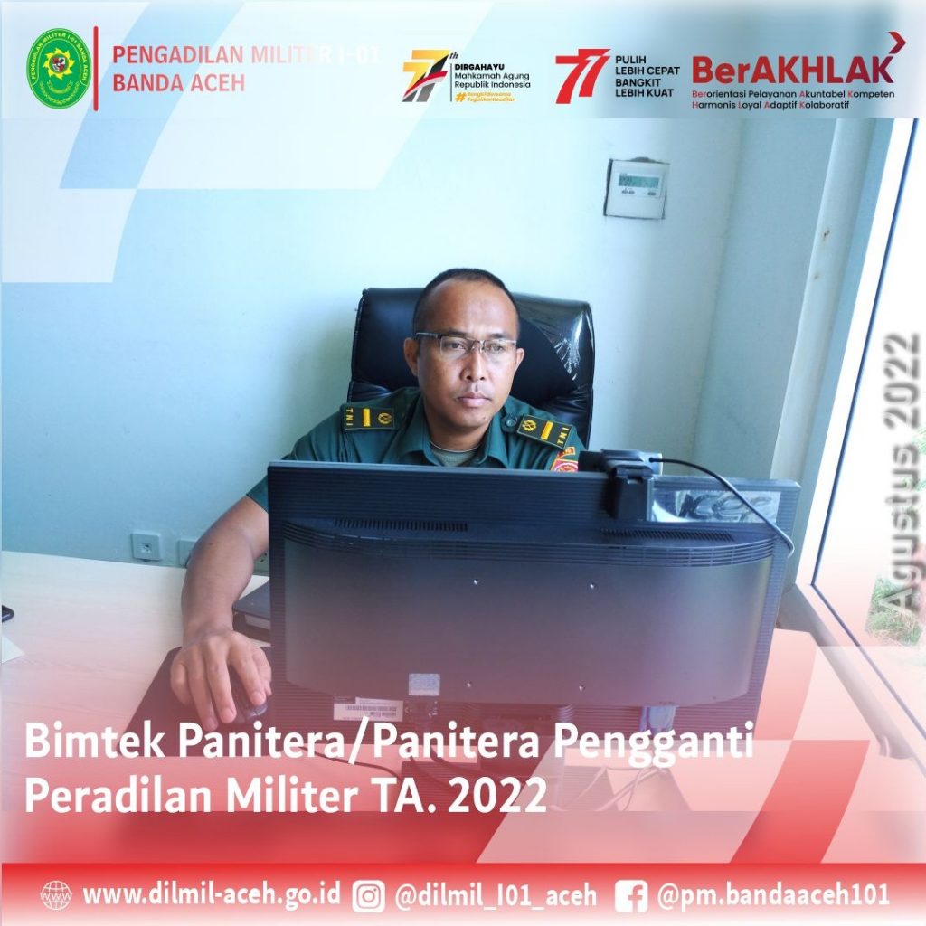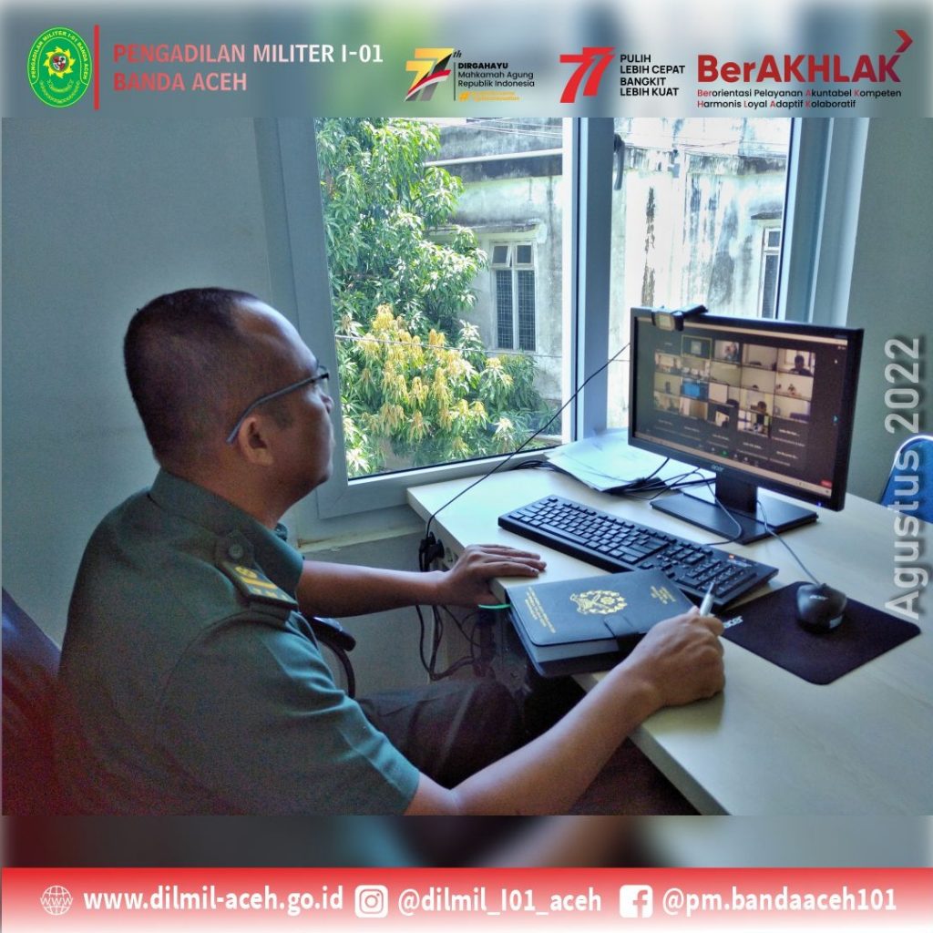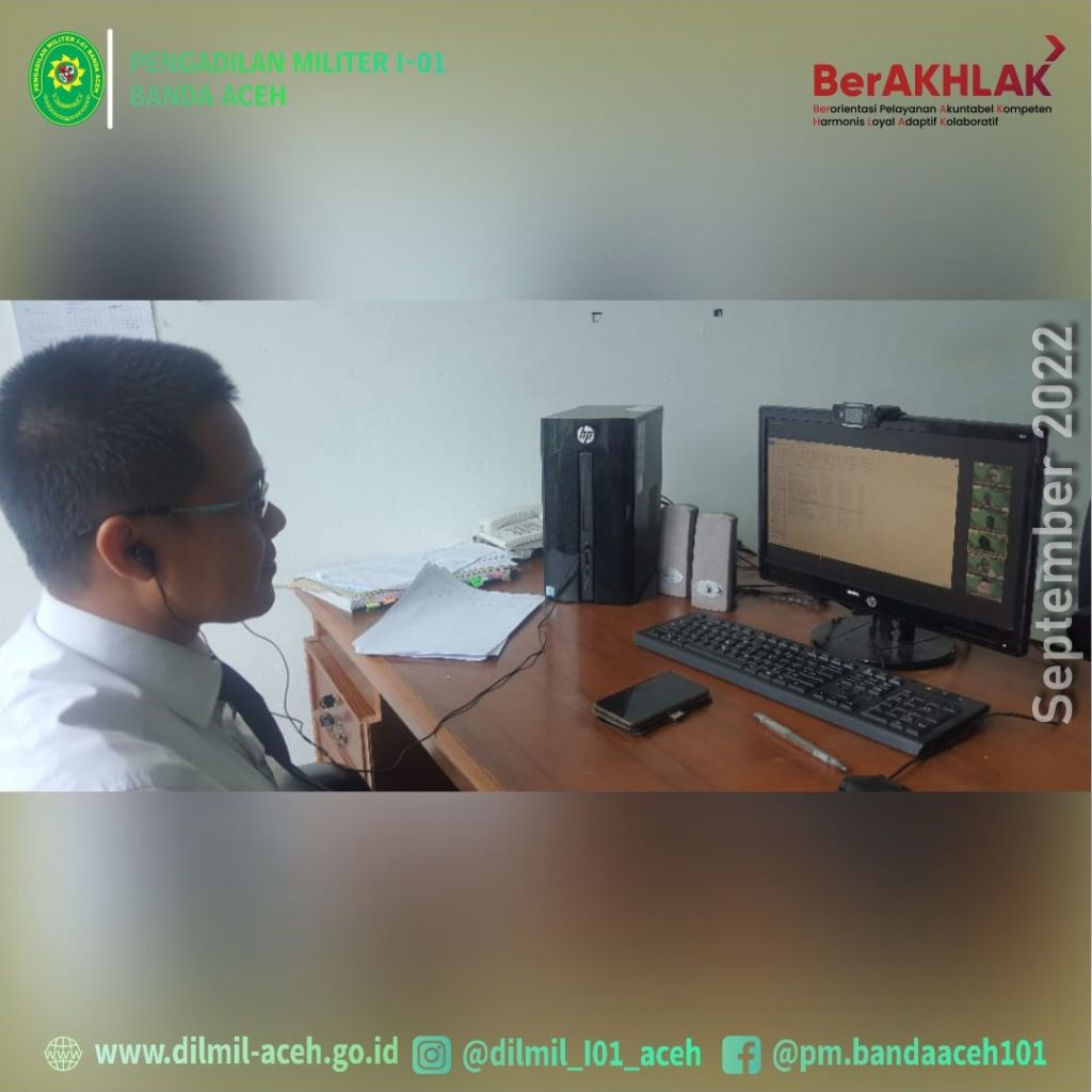 Banda Aceh – 7 September 2022. Calon Pegawai Negeri Sipil (CPNS) dari Pengadilan Militer I-01 Banda Aceh atas nama Irfan Dinata, A.Md. dan Muhammad Fauzan Ramadhan Nasution, A.Md. mengikuti Pelatihan Dasar CPNS Mahkamah Agung 2022 Golongan II Gelombang II secara virtual yang diselenggarakan oleh Pusdiklat MA bekerjasama dengan Balai Diklat Keagamaan Medan.