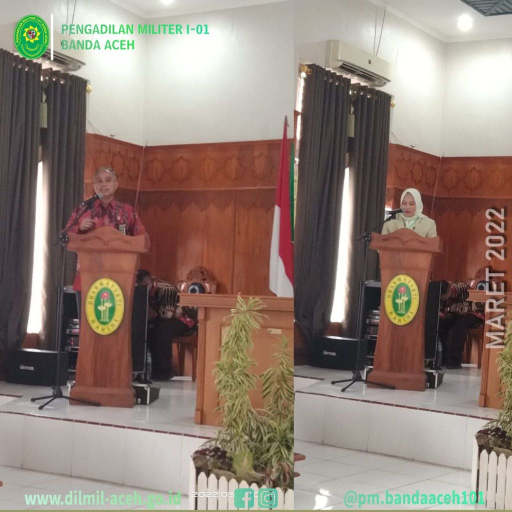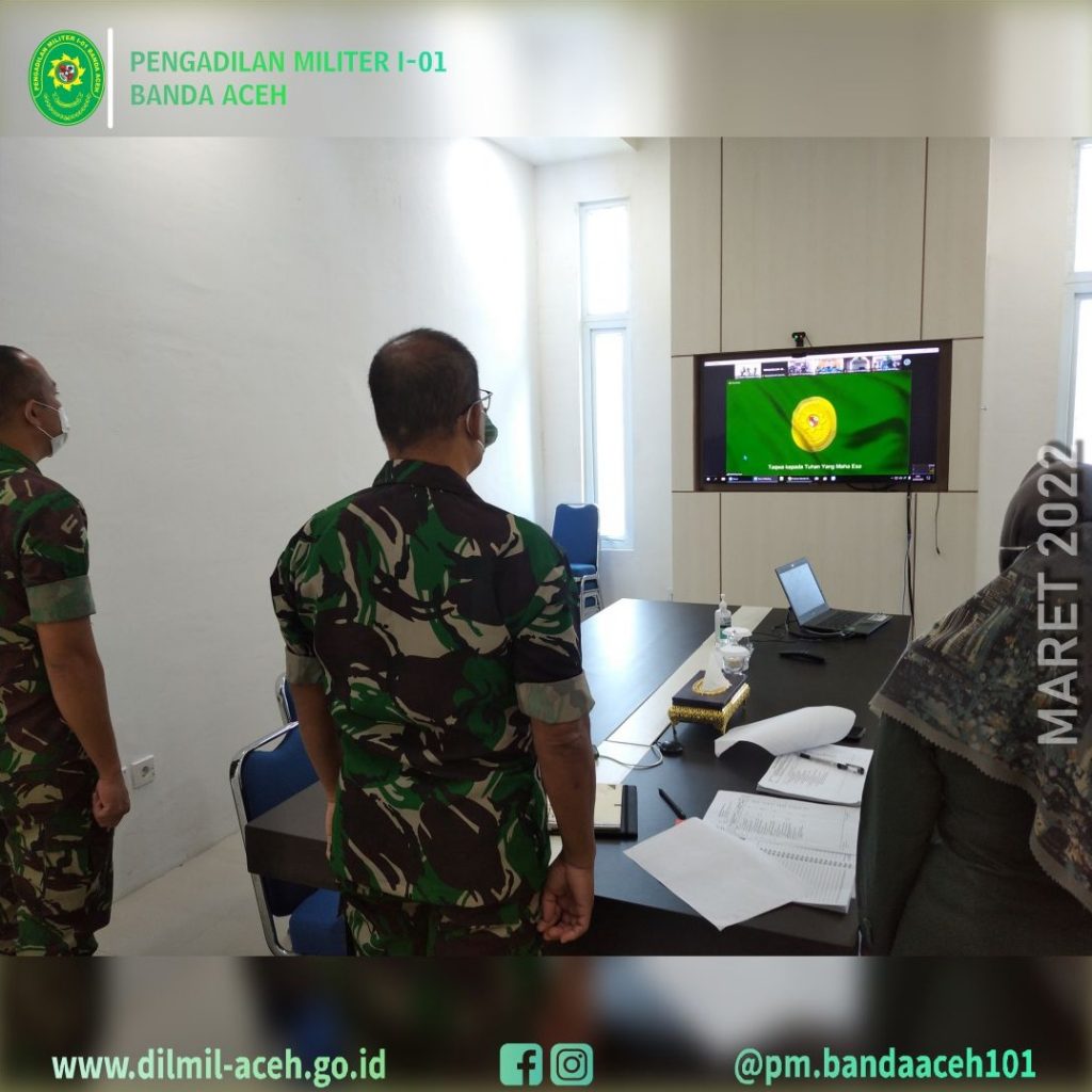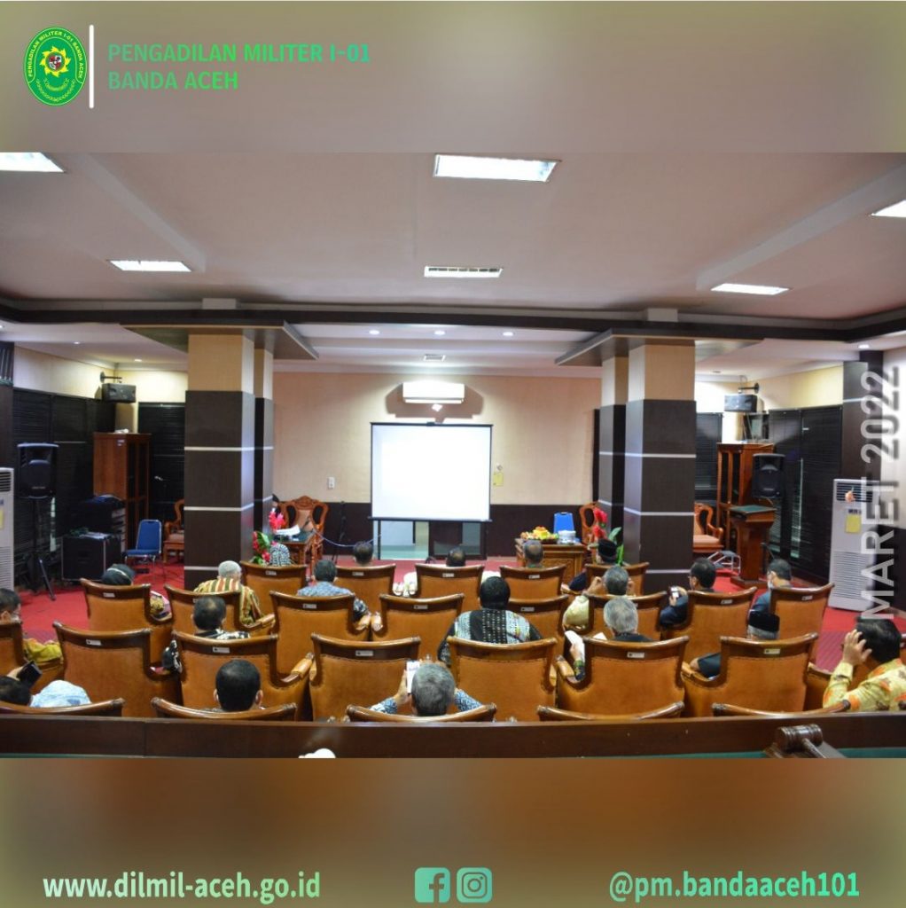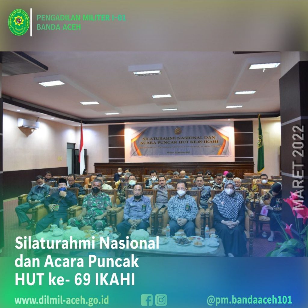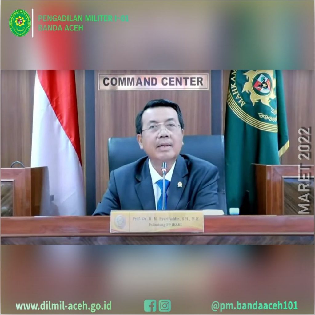 Banda Aceh -22 Maret 2022. Kepala Pengadilan Militer I-01 Banda Aceh, Kolonel Laut (KH) Riza Fadilah mengikuti kegiatan Puncak HUT IKAHI Ke-69 Tahun 2022 dan Silaturrahmi Nasional IKAHI secara virtual dengan YM Ketua Mahkamah Agung dan para Pimpinan Mahkamah Agung serta Pengurus Pusat IKAHI bertempat di Pengadilan Tinggi Banda Aceh. Adapun tema dalam peringatan Puncak HUT IKAHI tahun 2022 adalah ” Sinergitas IKAHI Mendukung Akselerasi Terwujudnya Peradilan Modern” .