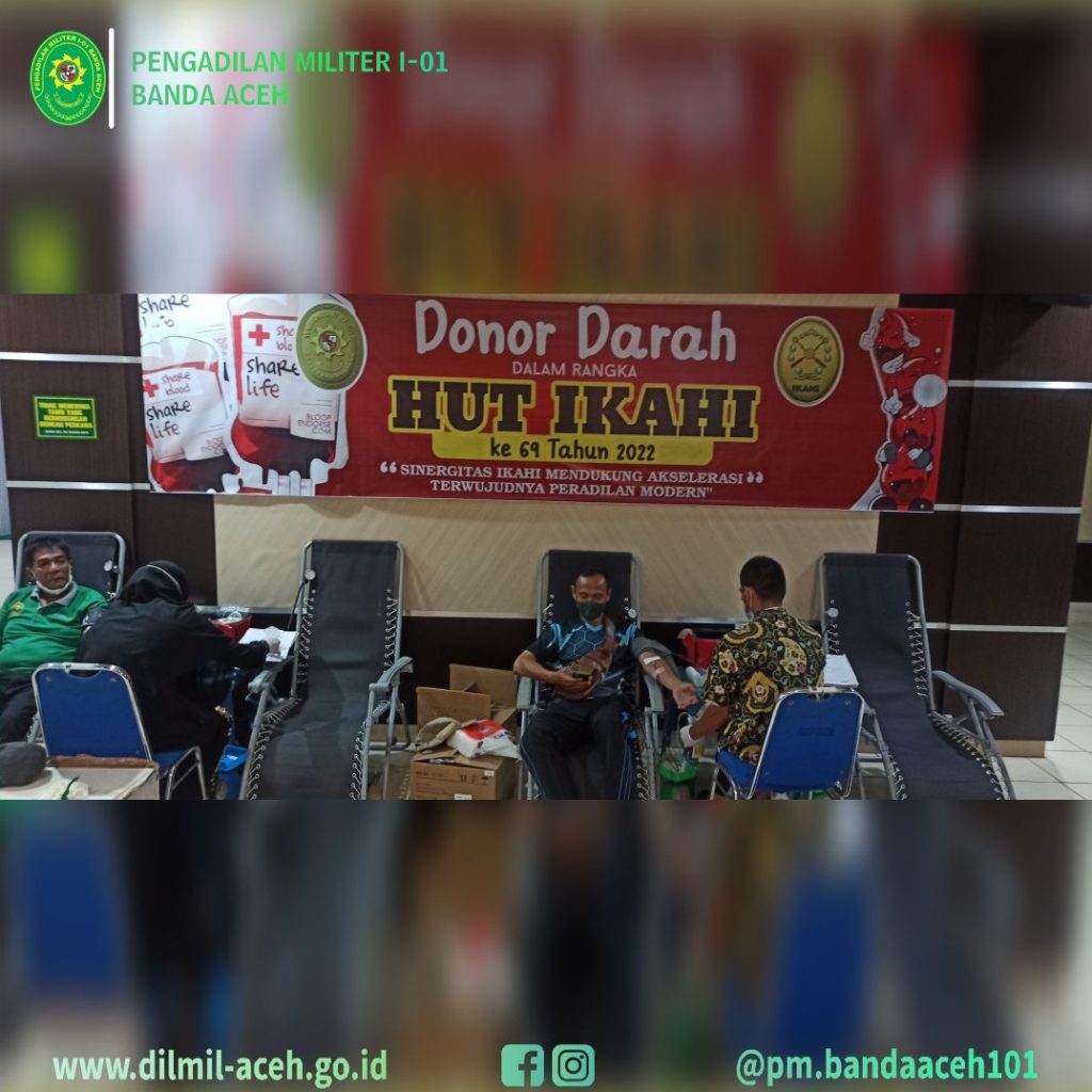 Banda Aceh – 20 Maret 2022. Pelaksanaan Jalan santai serta kegiatan donor darah dalam rangka memperingati HUT IKAHI ke-69 Provinsi Aceh dipusatkan di Pengadilan Tinggi Banda Aceh kemudian dilanjutkan dengan pemotongan tumpeng oleh Ketua Pengadilan Tinggi Banda Aceh Dr. H. Gusrizal, S.H., M.Hum sebagai pembina IKAHI Aceh, Ketua Mahkamah Syari’ah Aceh Drs. H. Zulkifli yus, M.H., Kepala Pengadilan Militer I-01 Banda Kolonel Laut (KH) Riza Fadilah, S.H dan Wakil Ketua PTUN Banda Aceh Effendi,S.H.