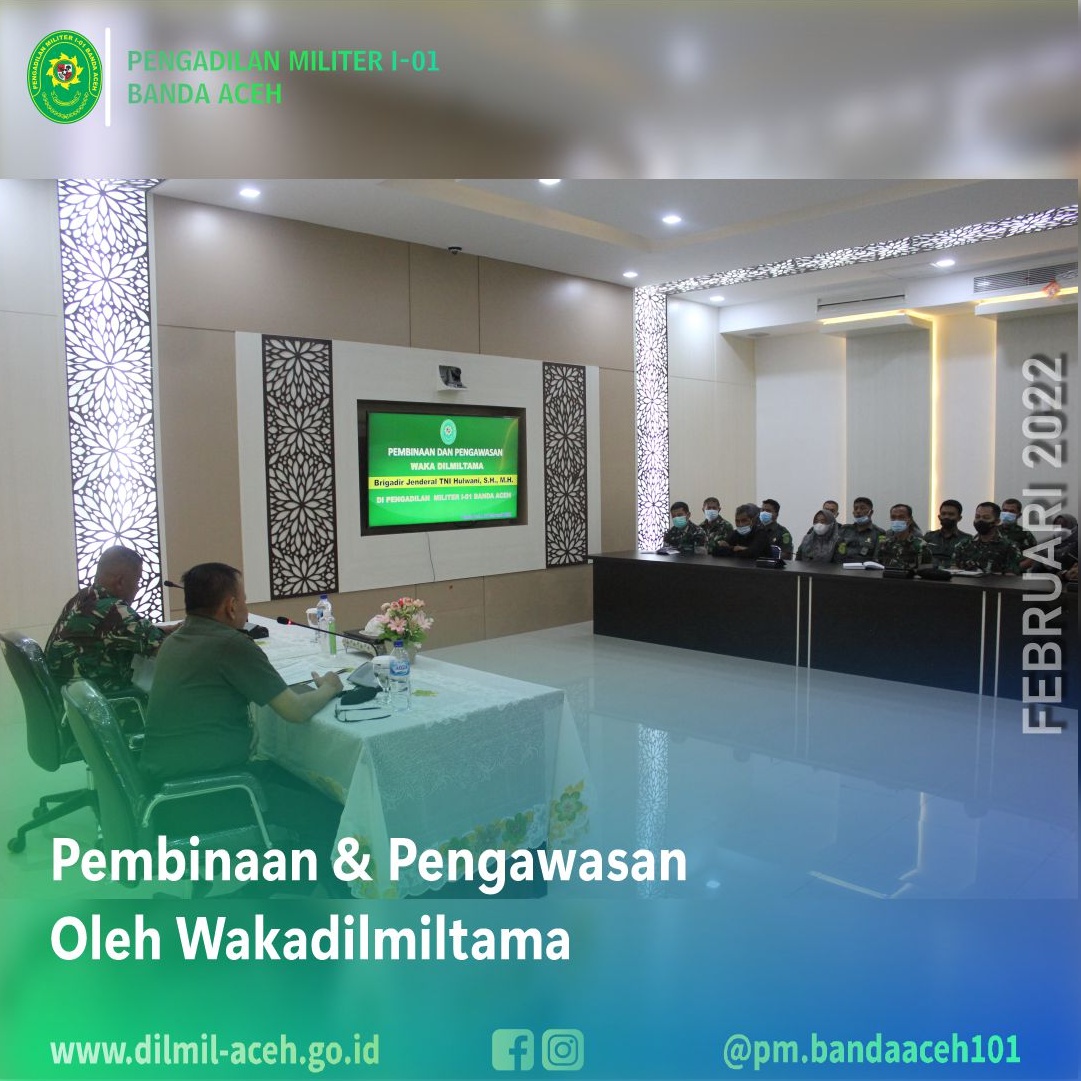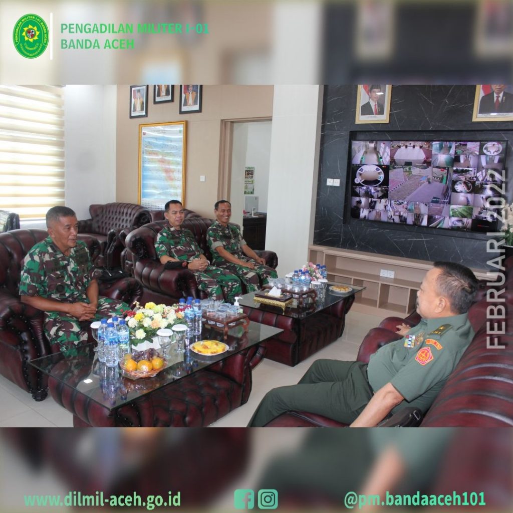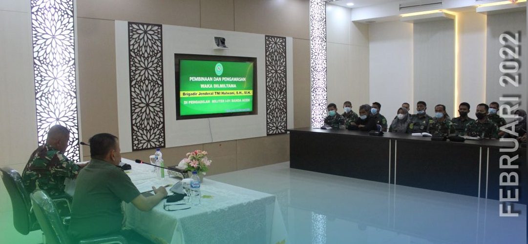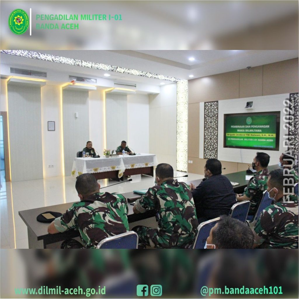 Banda Aceh – 9 Maret 2022 Pengadilan Militer Tinggi I Medan melaksanakan Pembinaan dan Pengawasan di Pengadilan Militer I-01 Banda Aceh. Tim Binwas yang dipimpin langsung oleh Wakil Kepala Pengadilan Militer Tinggi I Medan Kolonel Laut (KH/W) Tuty Kiptiani, S.H., M.H. didampingi Panitera Pengganti Pengadilan Militer Tinggi I Medan Mayor Chk Tedy Markopolo, S.H., dan Kasubbag Pelaporan dan Keuangan, ASN Ira Gustini Ginting, S.E .