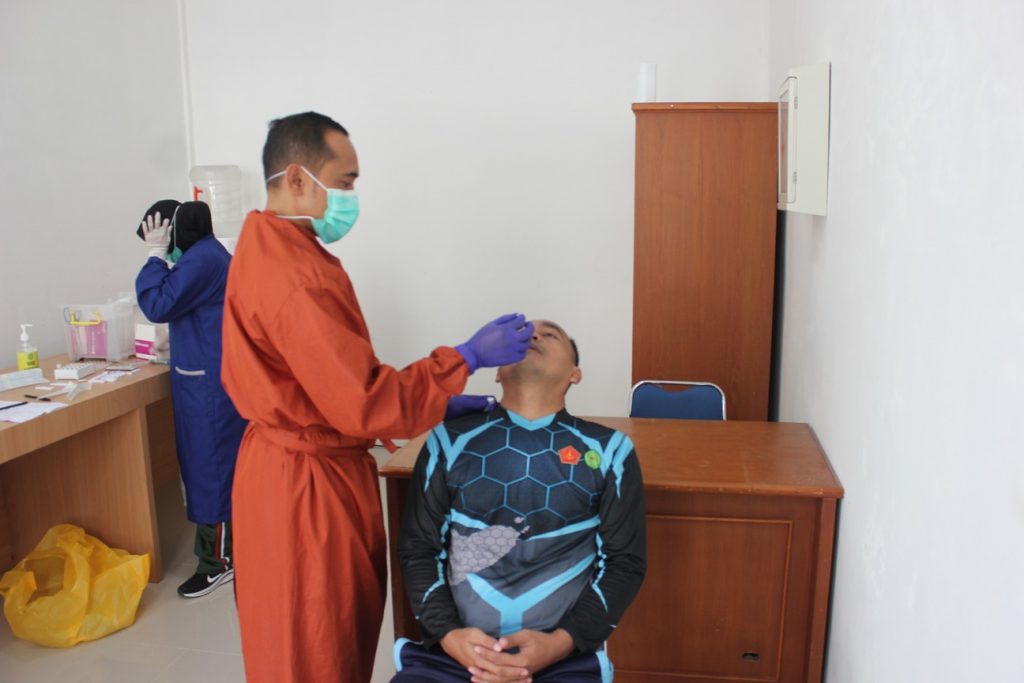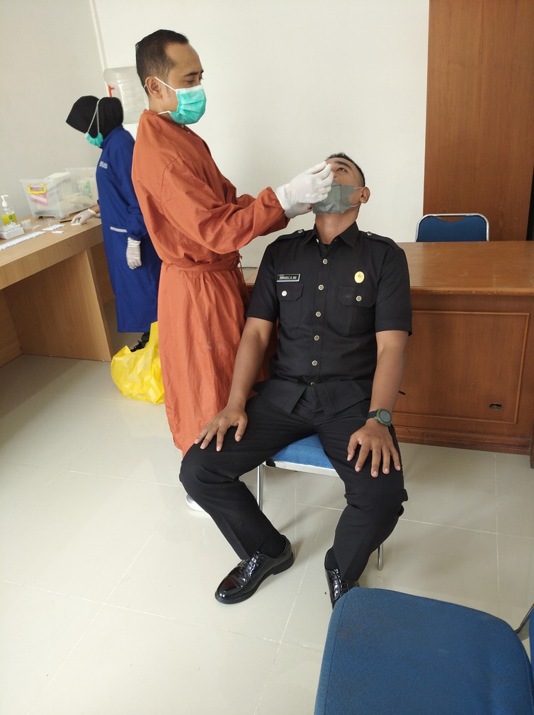 Banda Aceh – 26 November 2021, Pengadilan Militer I-01 Banda Aceh melakukan tes swab antigen Covid-19 kepada Para Hakim, Para Pejabat Strukutral/Fungsional maupun PPNPN. Kegiatan ini dilakukan di Ruang klinik kesehatan Dilmil I-01 Banda Aceh sekitar pukul 09.00 WIB. Pada swab tes antigen kali ini petugas medis menggunakan metode pemeriksaan dengan mengambil sampel di hidung.