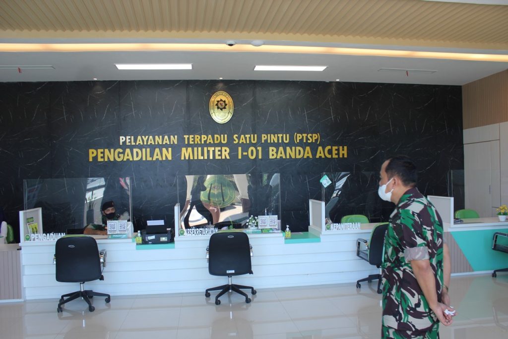 Rombongan disambut dengan hangat oleh Kadilmil, Sekretaris, Para Hakim, Panitera Muda Hukum, Para Kasubbag beserta seluruh aparatur Pengadilan Militer I-01 Banda Aceh. Setelah selesai acara penyambutan langsung, Brigjen TNI, Dr. Slamet Sarwo Edy S.H., M.Hum. langsung berkeliling di halaman dan gedung kantor Dilmil I-01 Banda Aceh guna memastikan pelaksanaan K3 (kebersihan, Keindahan, Kerapihan). Selanjutnya beliau memberikan pembinaan di ruang Auditorium kepada seluruh anggota dilmil I-01 Banda Aceh.