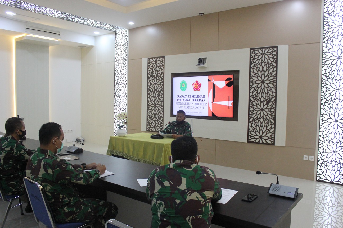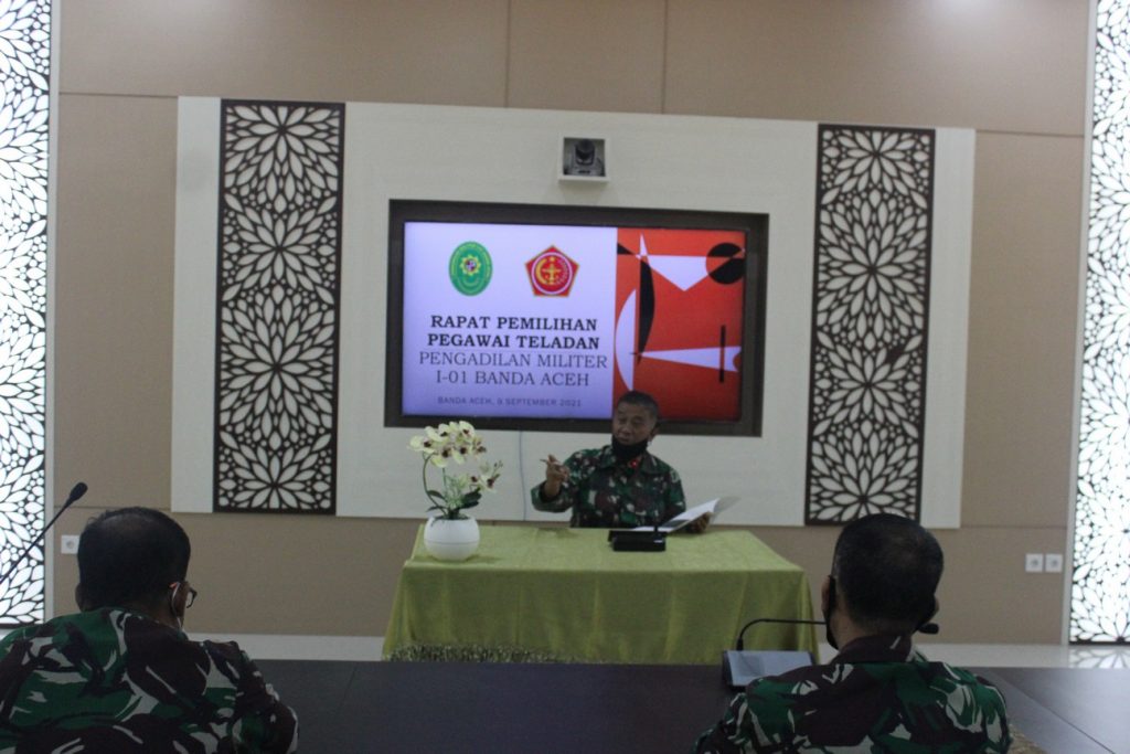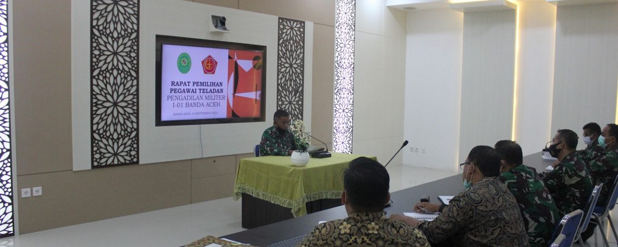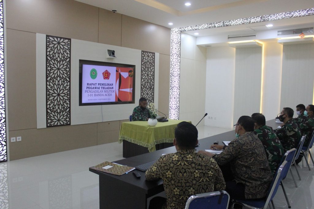 Banda Aceh – 9 September 2021. Dalam rangka pemilihan pegawai teladan tahun 2021, tim penilai di lingkungan Pengadilan Militer I-01 Banda Aceh yang dibentuk oleh Kepala Pengadilan Militer I-01 Banda Aceh melaksanakan rapat pemilihan Pegawai Teladan.