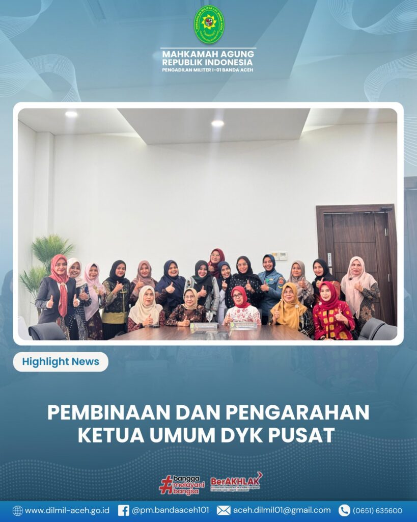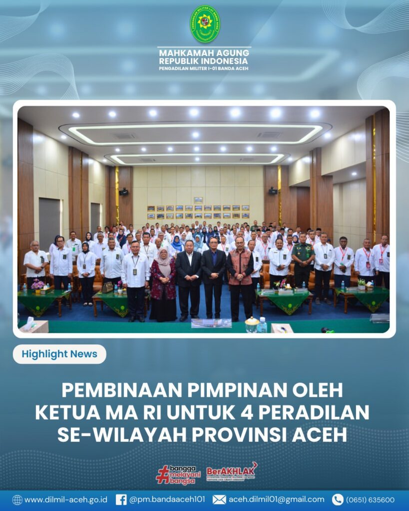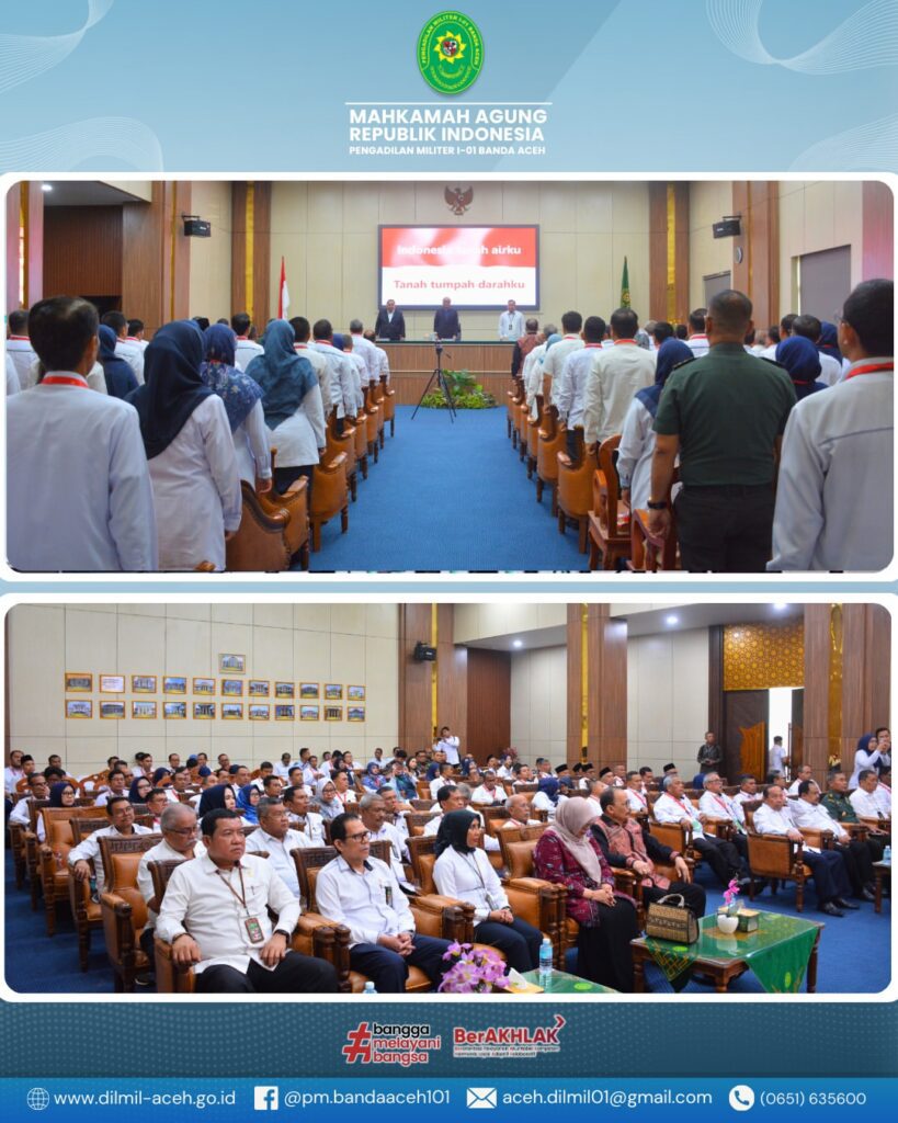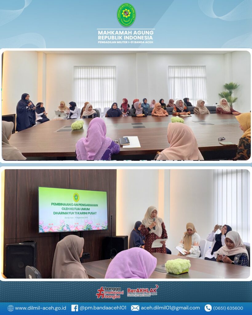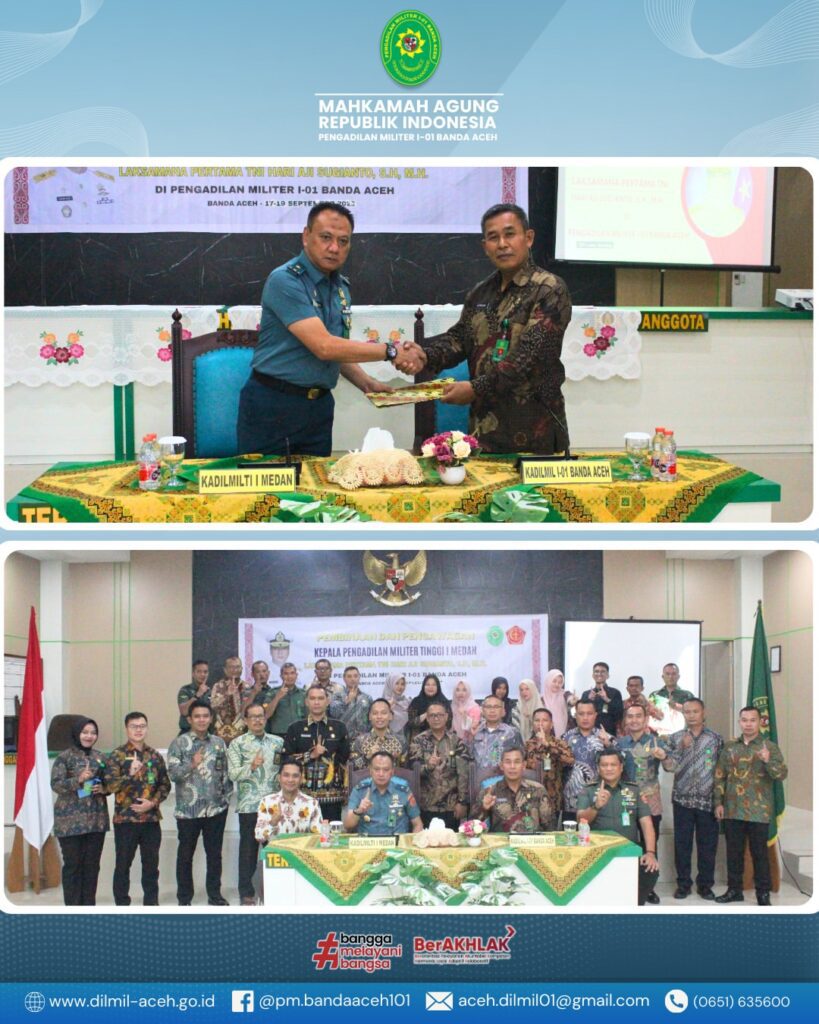 Banda Aceh – Kamis, 18 September 2025. Pengadilan Militer I-01 Banda Aceh menerima kunjungan kerja Kepala Pengadilan Militer Tinggi I Medan yang dipimpin oleh Laksamana Pertama TNI Hari Aji Sugianto, S.H., M.H. dalam rangka kegiatan Pembinaan dan Pengawasan.