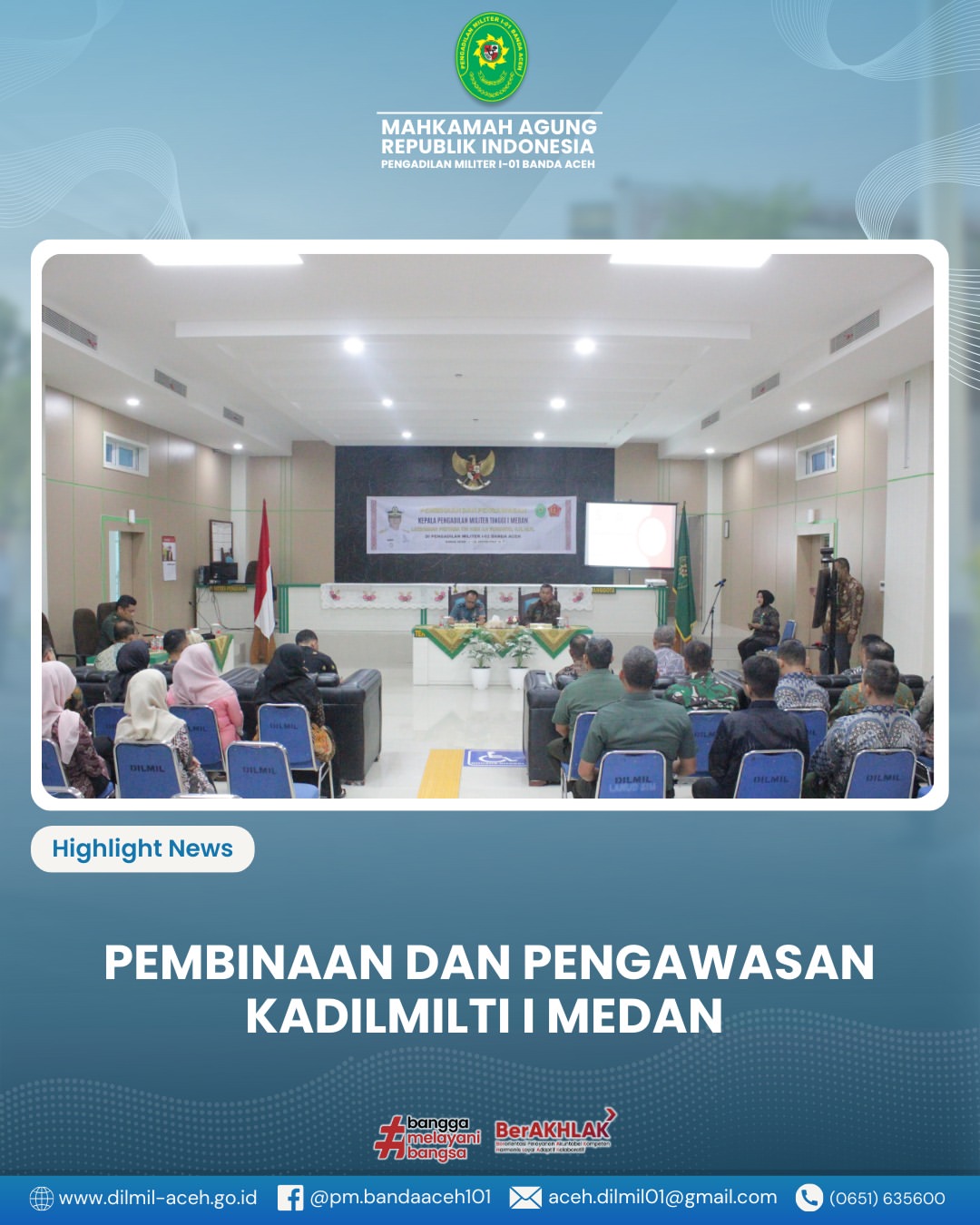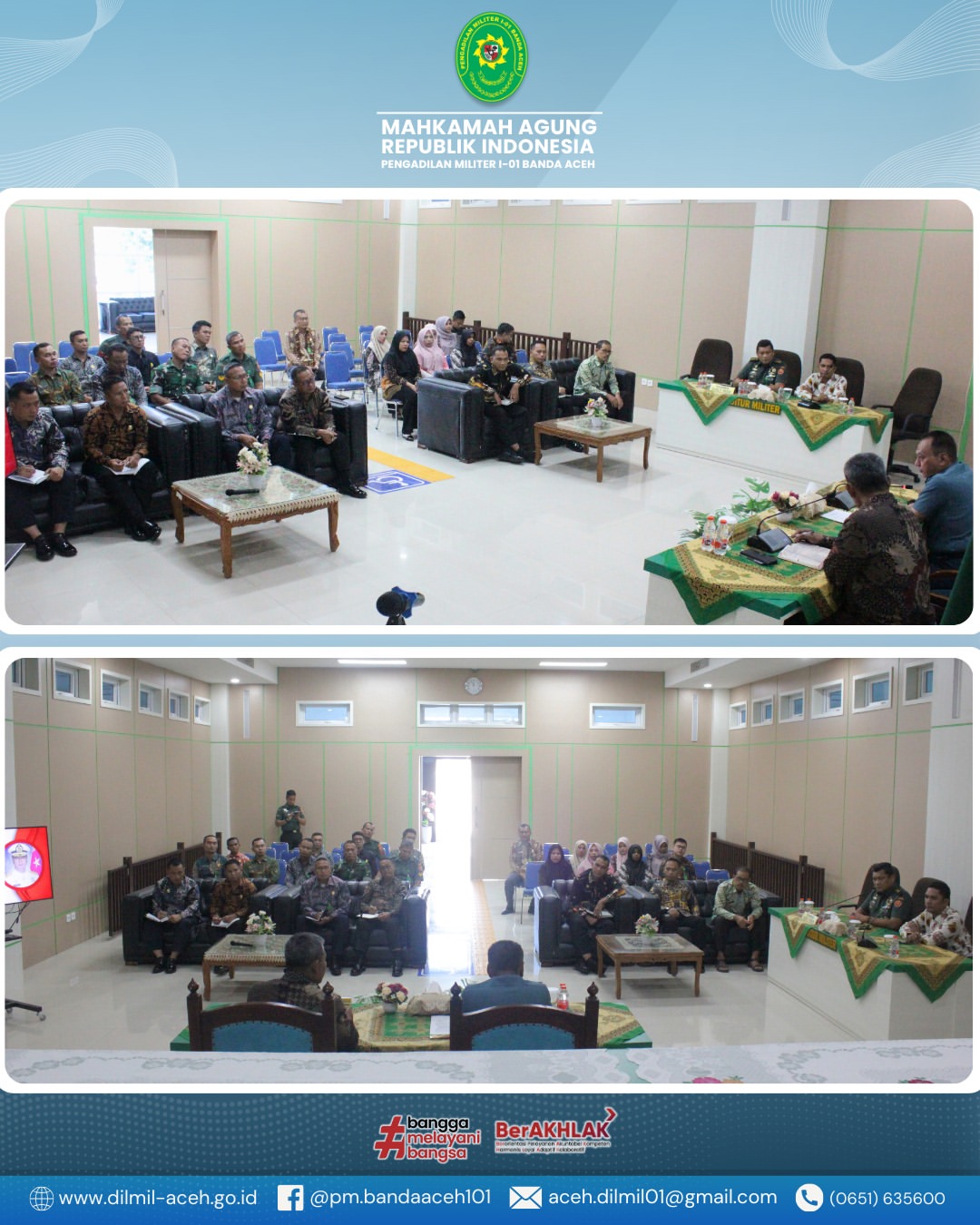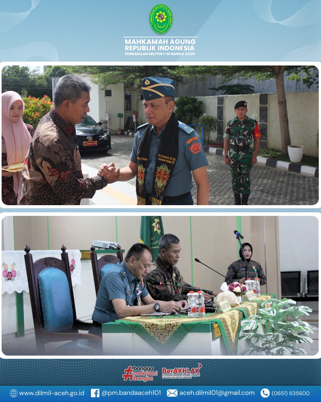 Banda Aceh – Kamis, 18 September 2025. Pengadilan Militer I-01 Banda Aceh menerima kunjungan kerja Kepala Pengadilan Militer Tinggi I Medan yang dipimpin oleh Laksamana Pertama TNI Hari Aji Sugianto, S.H., M.H. dalam rangka kegiatan Pembinaan dan Pengawasan.