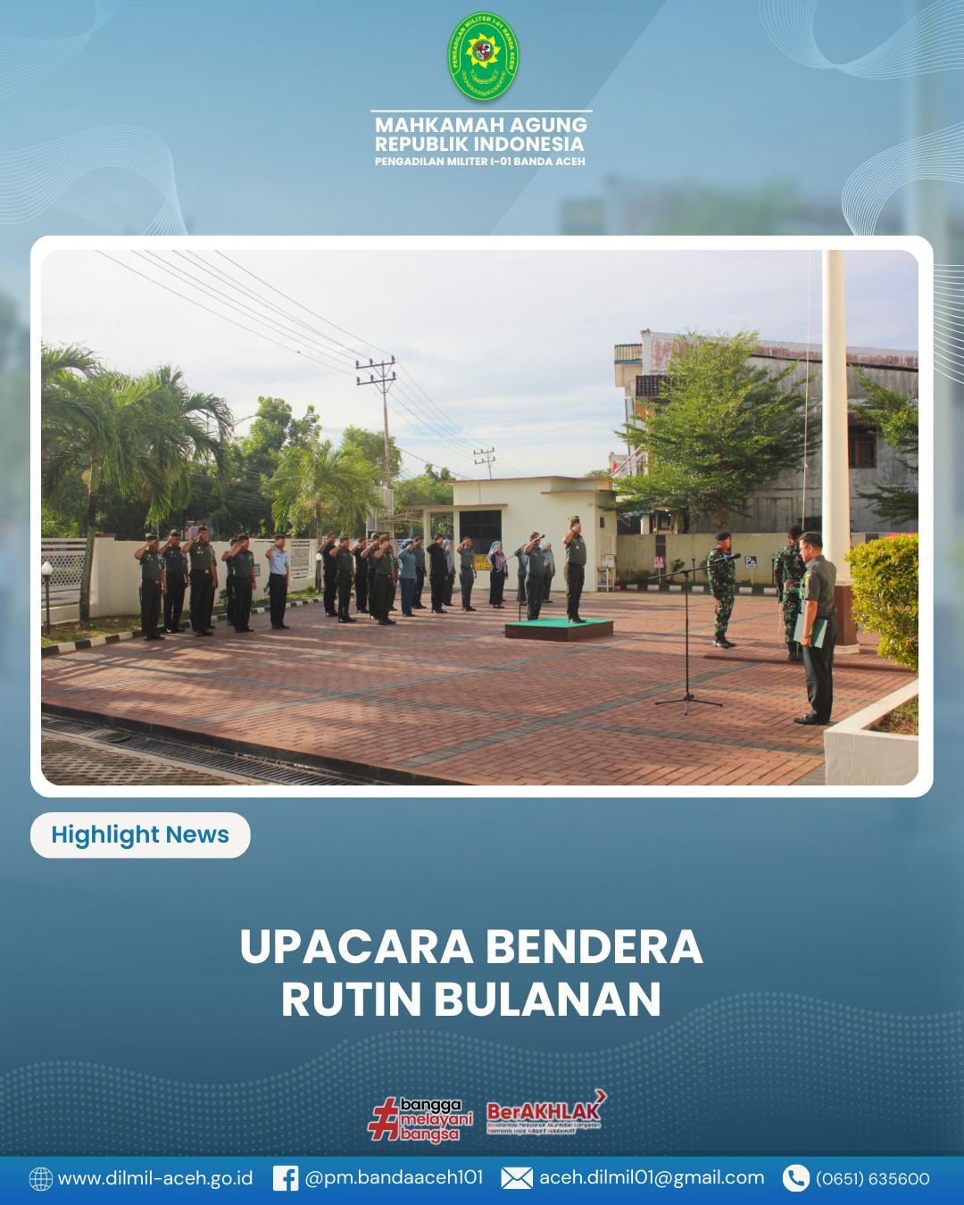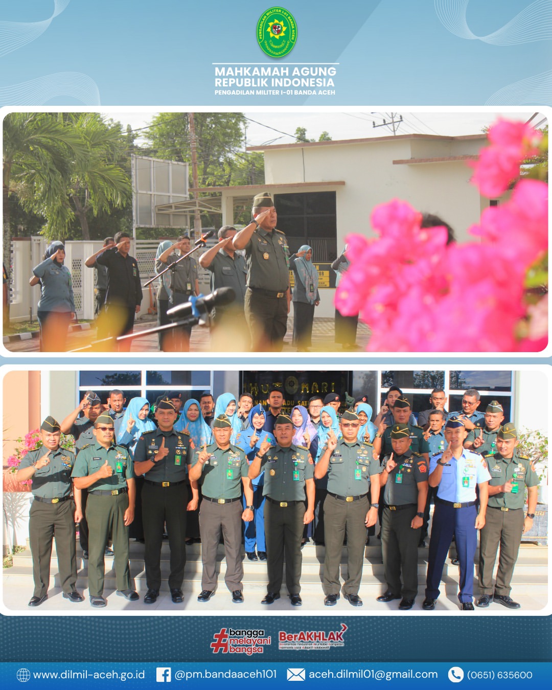 Kedatangan Kadilmilti I Medan disambut langsung oleh Kepala Pengadilan Militer I-01 Banda Aceh Kolonel Chk Khamdan, S.Ag., S.H., M.H. beserta personel.