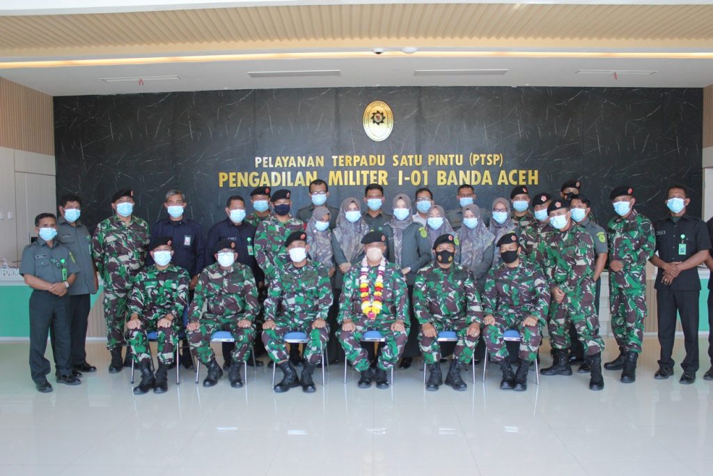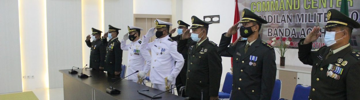 Banda Aceh – 27 Juli 2021 bertempat di Halaman Gedung Kantor Pengadilan Militer I-01 Banda Aceh beserta seluruh anggota melaksanakan Acara Tradisi penyambutan Kadilmil I-01 Banda Aceh yang baru yaitu Letkol Laut Riza Fadilah, S.H.