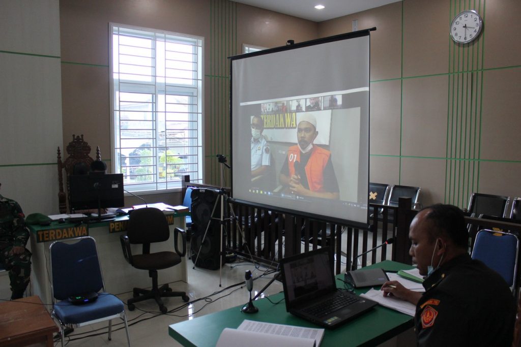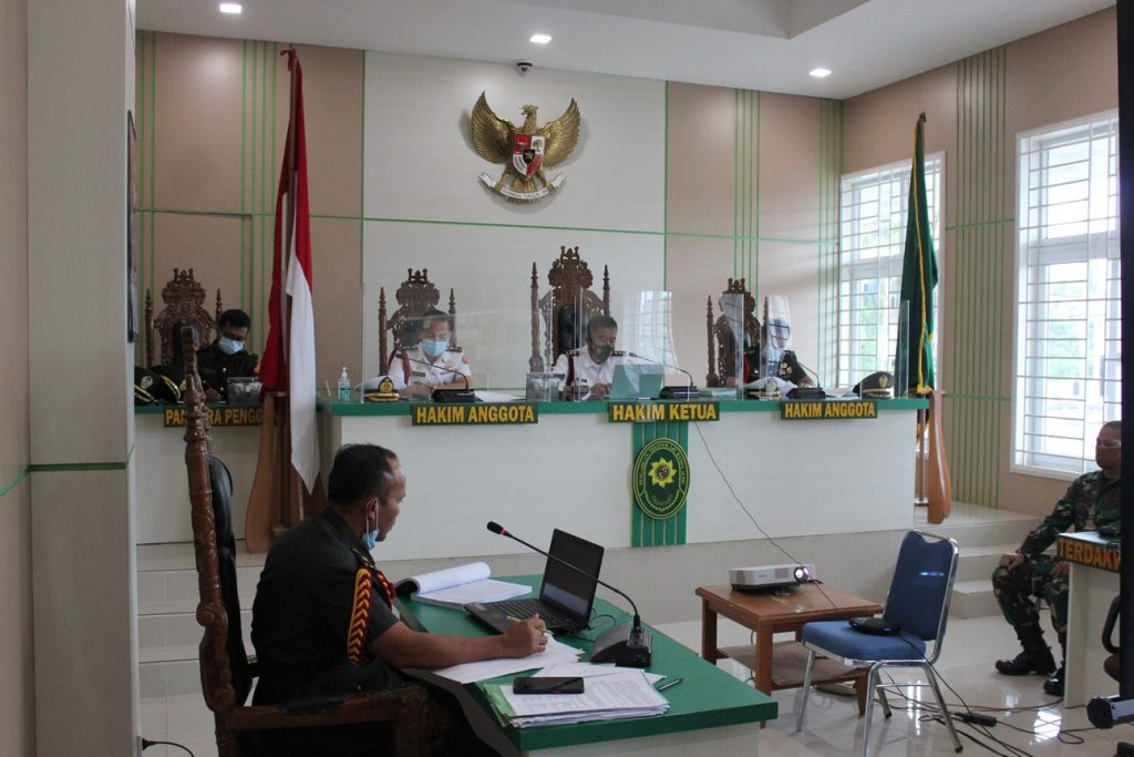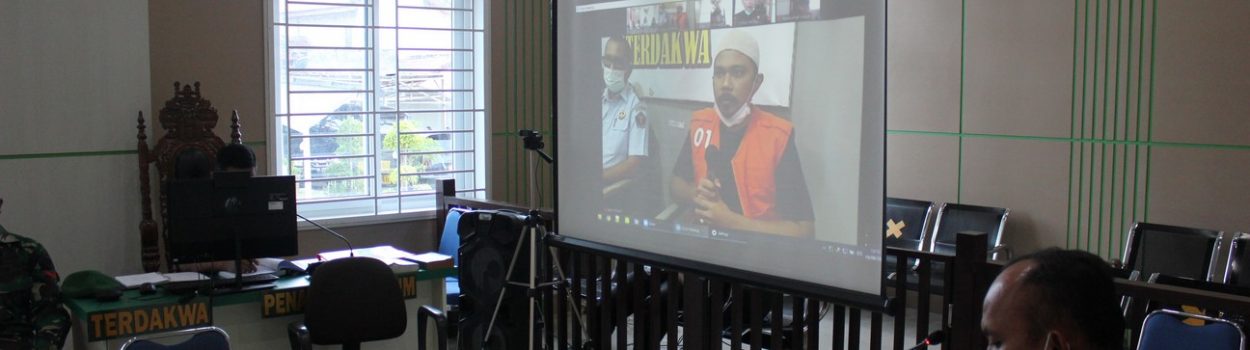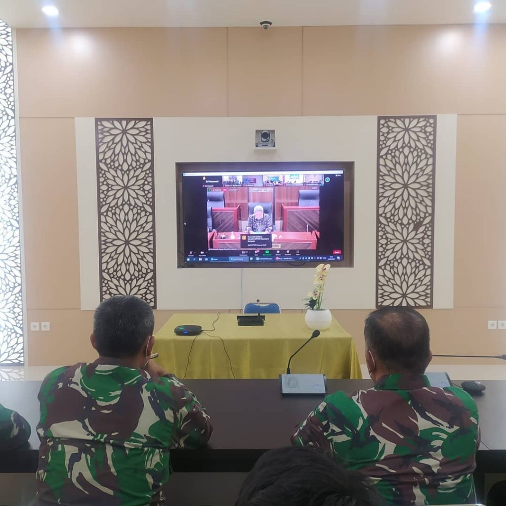 Banda Aceh – 19 Agustus 2021, Pengadilan Militer I-01 Banda Aceh menyelenggarakan persidangan perkara dengan agenda pemeriksaaan saksi yang dilaksanakan secara teleconference karena saksi berada di Lembaga Pemasyarakatan Kelas IIB Bireuen.