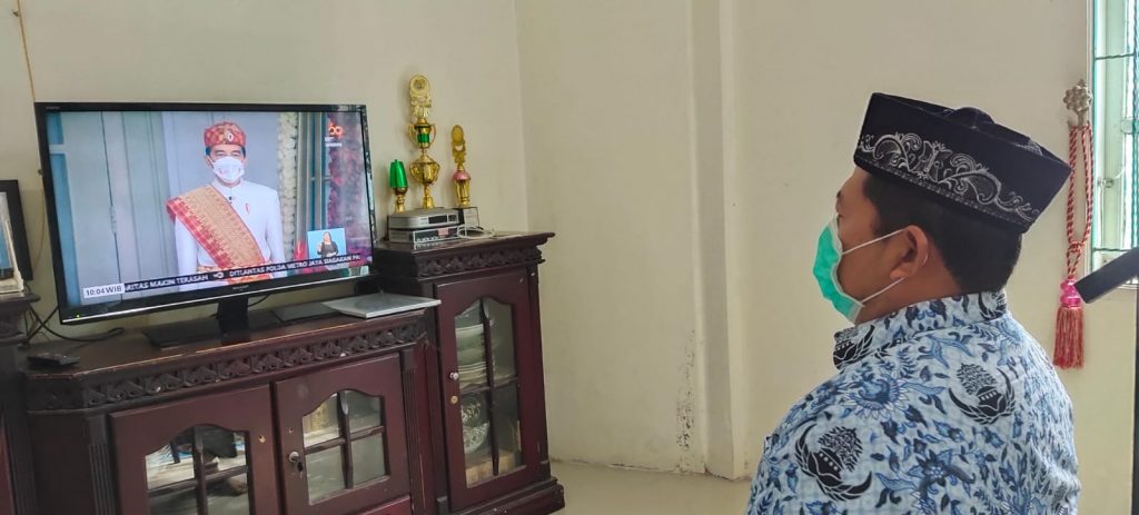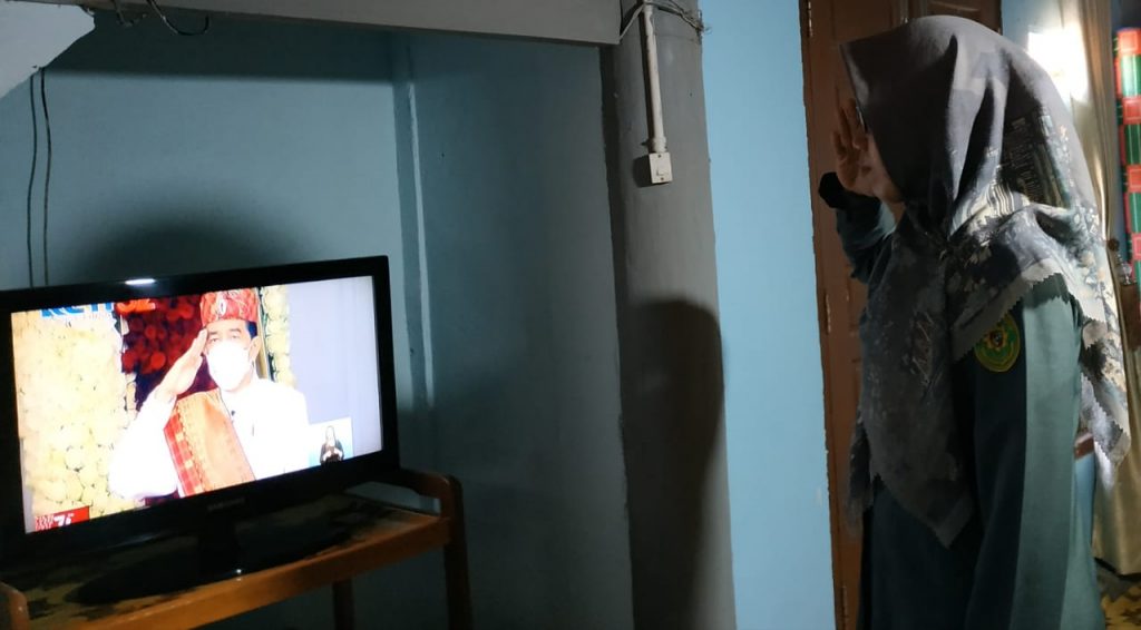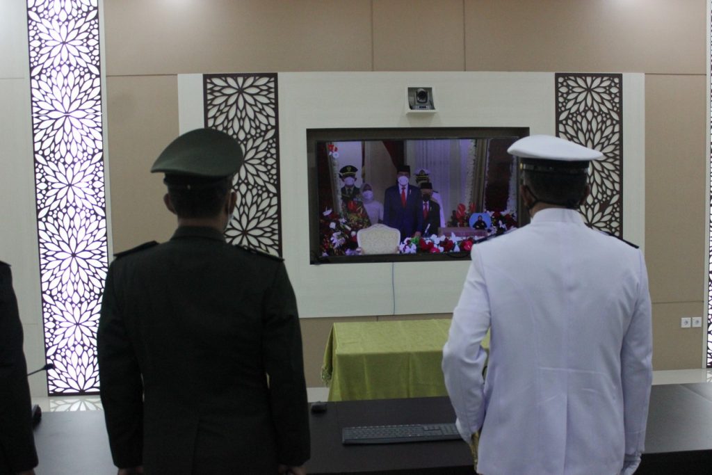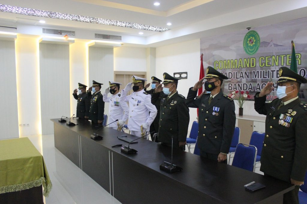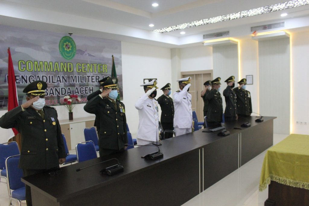 Banda Aceh – 17 Agustus 2021 Pengadilan Militer I-01 Banda Aceh melaksanakan upacara secara virtual memperingati HUT RI ke-76 bertempat di ruang Auditorium Pengadilan Militer I-01 Banda Aceh. Upacara berlangsung pada pukul 10.00 WIB, dengan tema ”Indonesia Tangguh Indonesia Tumbuh” dihadiri oleh Kepala, Hakim, Sekretaris, Panitera Muda dan Panitera Pengganti. Untuk pegawai yang tidak menghadiri upacara virtual di Pengadilan Militer I-01 Banda Aceh, juga turut serta dalam upacara virtual ini di rumah masing-masing melalui televisi. Upacara virtual digelar dengan tetap mengikuti protokoler kesehatan covid-19 dengan menjaga jarak dan dilengkapi dengan pemakaian masker.Dirgahayu Republik Indonesia ke-76.