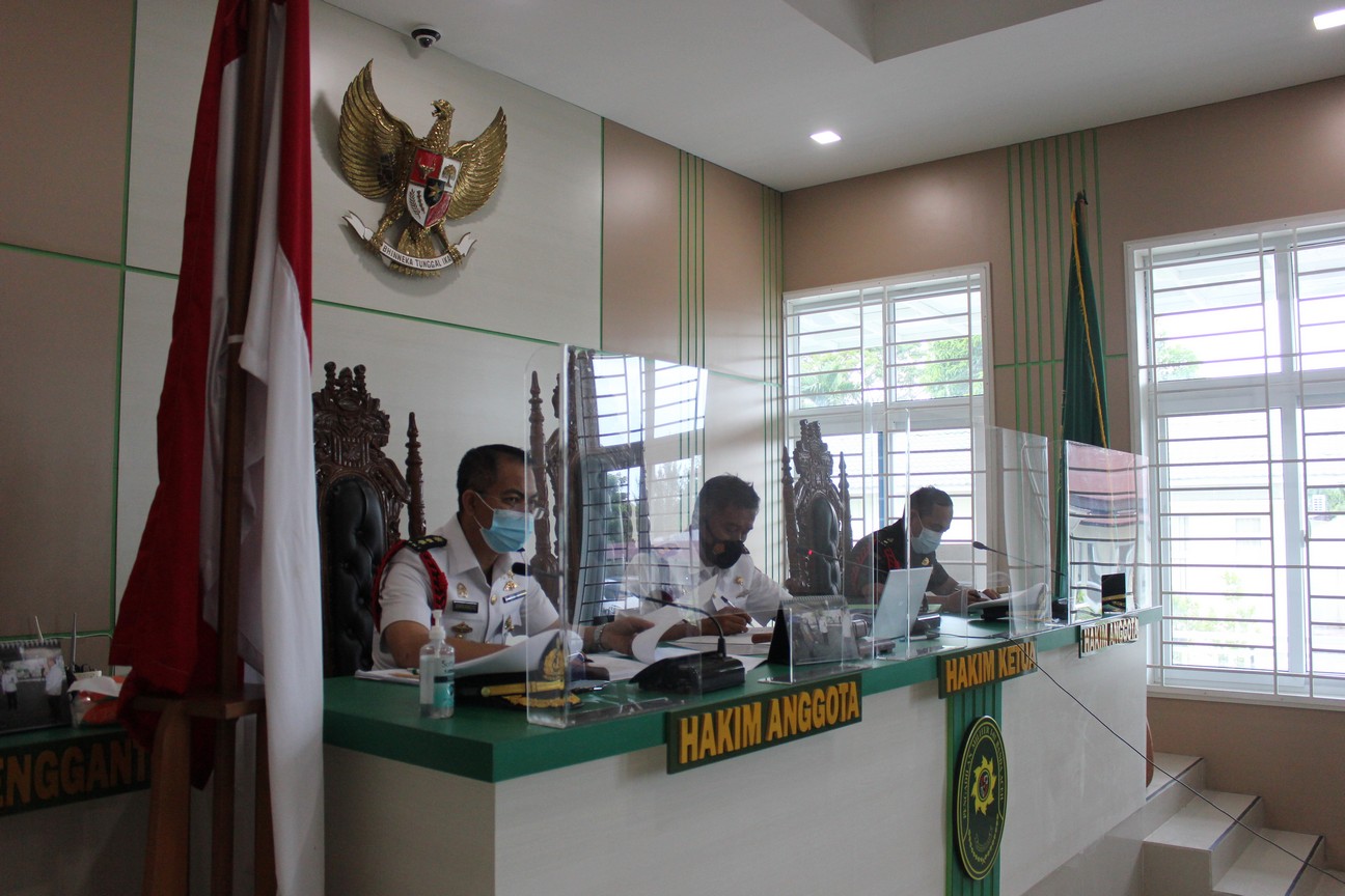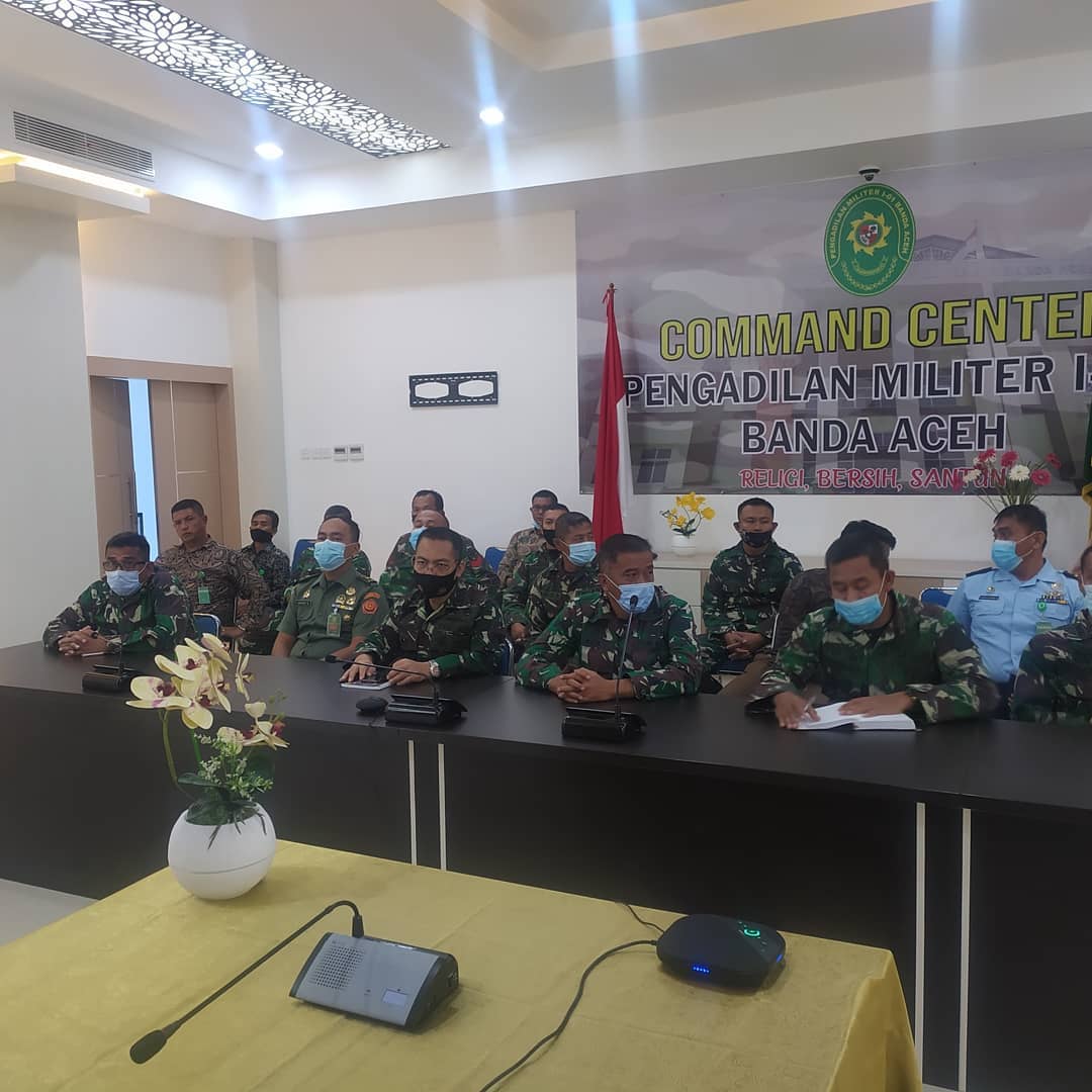 Banda Aceh – 19 Agustus 2021, Pengadilan Militer I-01 Banda Aceh menyelenggarakan persidangan perkara dengan agenda pemeriksaaan saksi yang dilaksanakan secara teleconference karena saksi berada di Lembaga Pemasyarakatan Kelas IIB Bireuen.