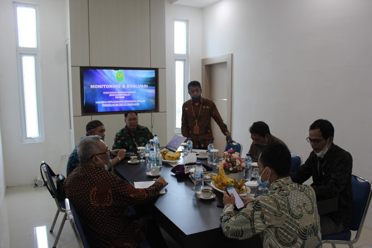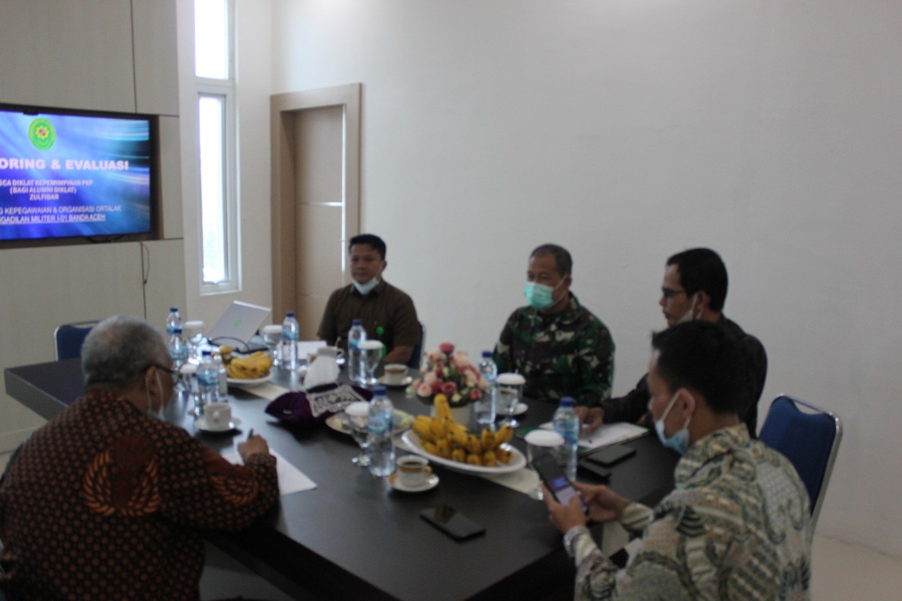 Banda Aceh – 3 Juni 2021. Pengadilan Militer I-01 Banda Aceh mendapat kunjungan Tim Observasi Balitbang Diklat Kumdil MA RI yaitu Dr. H. Zulfahmi, S.H., M.H. (Hakim Tinggi Balitbang Diklat Kumdil MA RI), H. Sarpin Rizaldi, S.H.,M.H. (Hakim Tinggi Balitbang Diklat Kumdil MA RI), Kolonel Chk SUtrisno Setio Utomo, S.H., M.H. (Hakim Tinggi Balitbang Diklat Kumdil MA RI), Sumardi (Staf TU Pusdiklat Menpin), Martono (Staf Sekretariat Balitbang Diklat Kumdil).