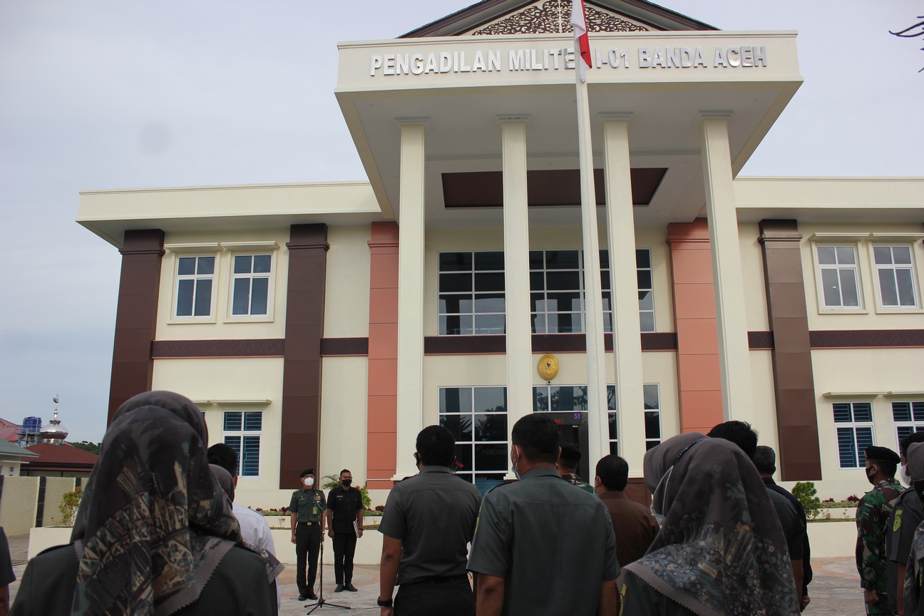 Banda Aceh – Senin, 7 Juni 2021. Pengadilan Militer I-01 Banda Aceh melaksanakan kegiatan rutinitas apel pagi di halaman depan kantor Pengadilan yang di pimpin oleh Hakim Militer Letkol Chk Syawaluddinsyah, S.H.. Apel pagi ini merupakan apel perdana beliau sebagai hakim di Pengadilan MIliter I-01 Banda Aceh. Selanjutnya beliau juga menyampaikan salam perkenalan singkat dan mengharapkan agar bisa terjalin kerjasama dan sama-sama bekerja sehingga mewujudkan Pengadilan Militer I-01 Banda Aceh menjadi lebih baik.