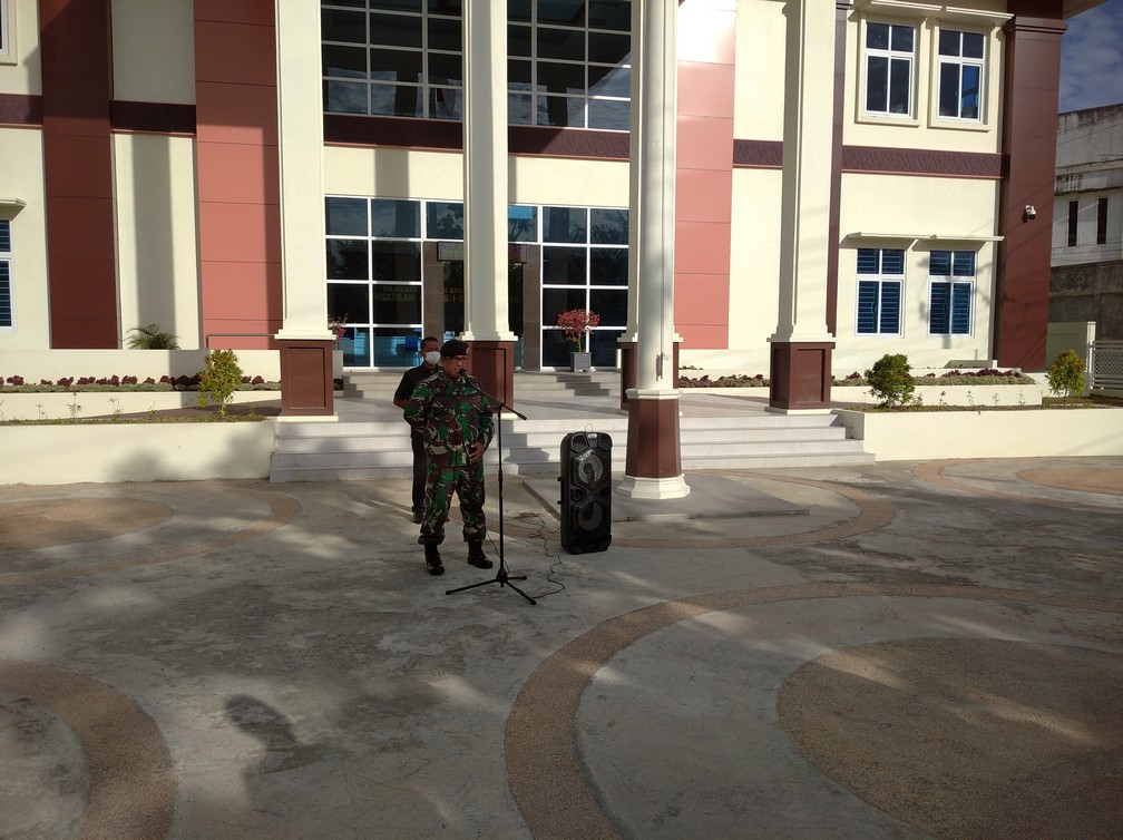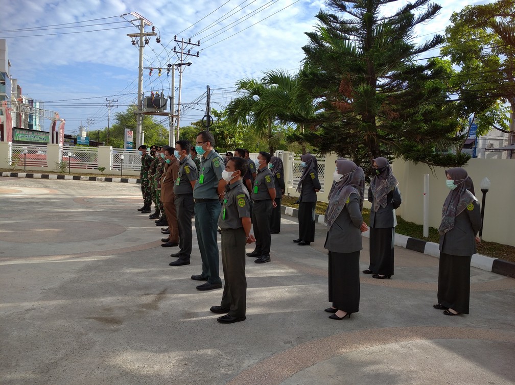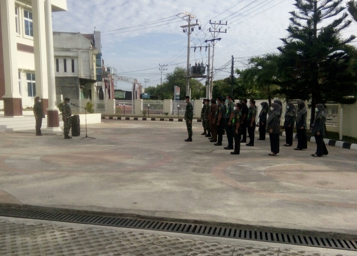 Banda Aceh – Senin, 24 Mei 2021 Pelaksanaan Apel Senin Pagi di halaman depan kantor Pengadilan Militer I-01 Banda Aceh yang di pimpin oleh Panitera Pengadilan Militer I-01 Banda Aceh, Mayor Chk Hermizal, S.H.