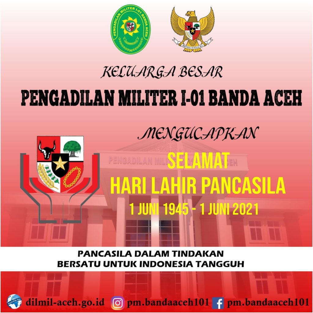 Banda Aceh – Selasa, 1 Juni 2021 bertepatan dengan Hari Lahir Pancasila bertemakan “Pancasila Dalam Tindakan, Bersatu Untuk Indonesia Tangguh”.