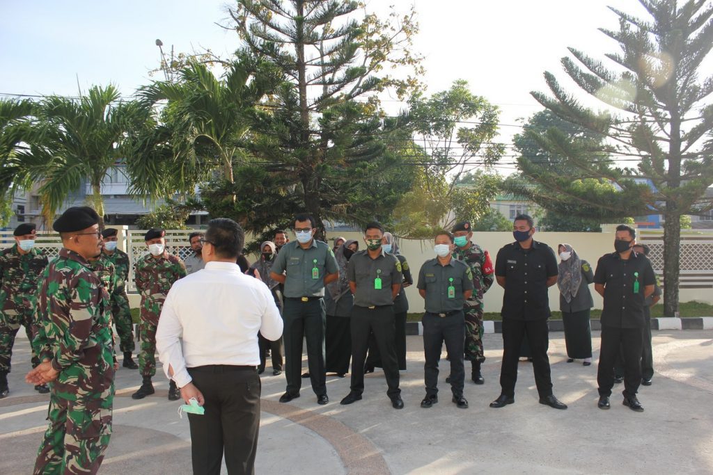 BANDA ACEH – Rabu, 10 Maret 2021, Kepala Pengadilan Militer I-01 Banda Aceh Letnan Kolonel Chk Agus Husin,S.H.,M.H. bersama para Hakim Militer Pengadilan Militer I-01 Banda Aceh menghadiri acara pemusnahan barang bukti narkotika dilaksanakan di Lapangan Jasdam Iskandar Muda Jl. Nyak Adam Kamil III Neusu Jaya, Banda Aceh