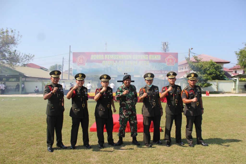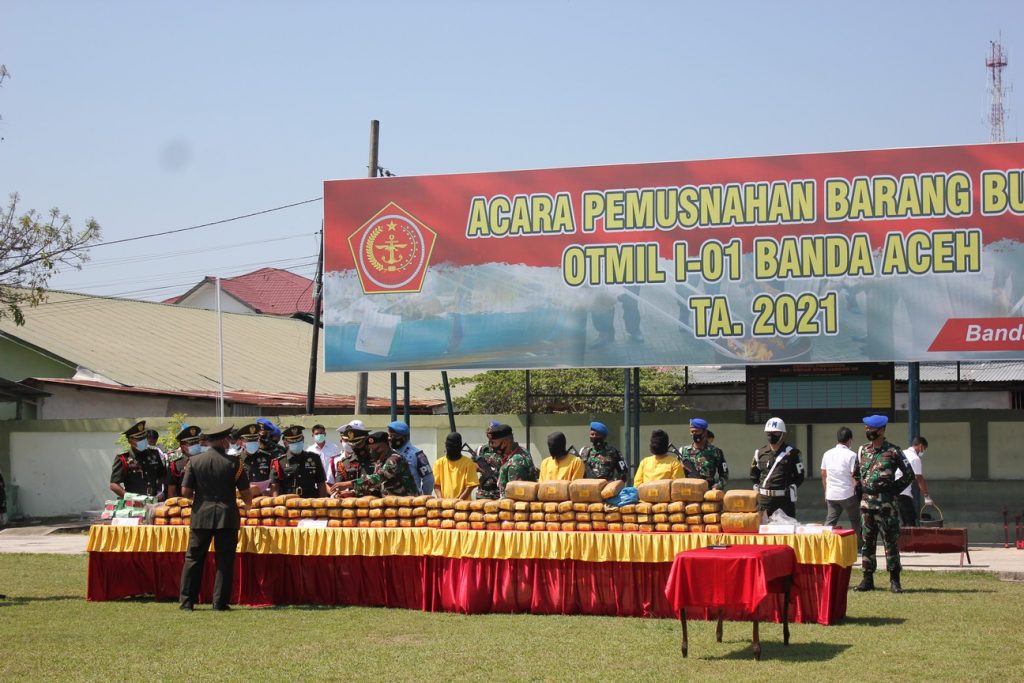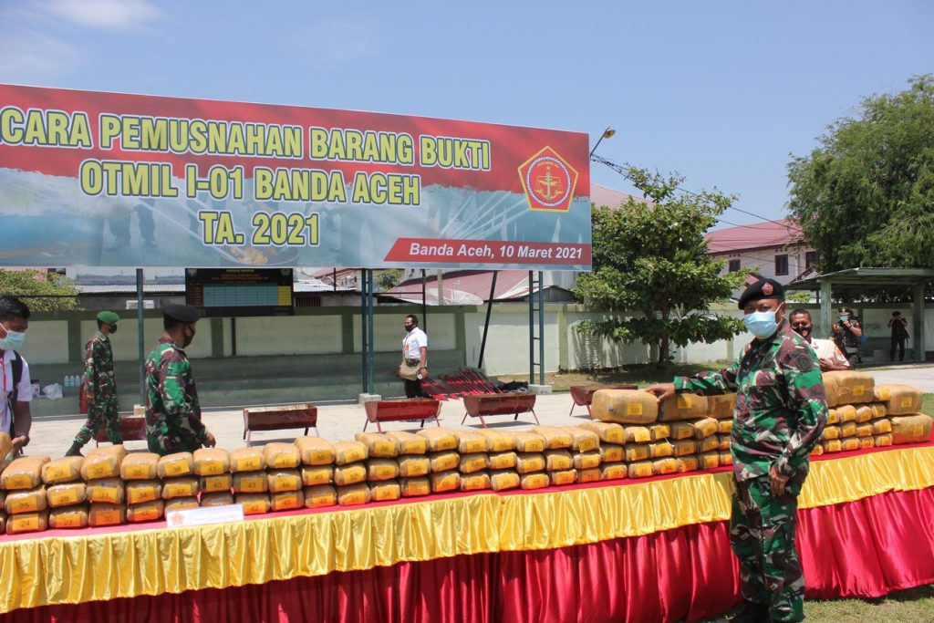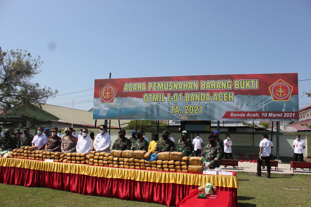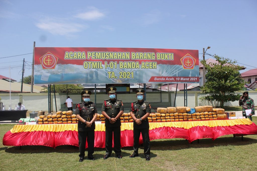 Barang bukti yang dimusnahkan berupa 13,6 kilogram (kg) narkotika jenis sabu, 158 kg ditambah 12,9 gram ganja. Kemudian, sebanyak 24 unit alat hisap sabu (bong) juga ikut dimusnahkan dengan cara dibakar. Ini adalah barang bukti pada Oditurat Militer (Otmil) I-01 Banda Aceh yang telah diputus oleh Pengadilan Militer I-01 Banda Aceh rentang waktu dari bulan April tahun 2020 sampai dengan Februari 2021 dengan jumlah sebanyak 22 perkara.