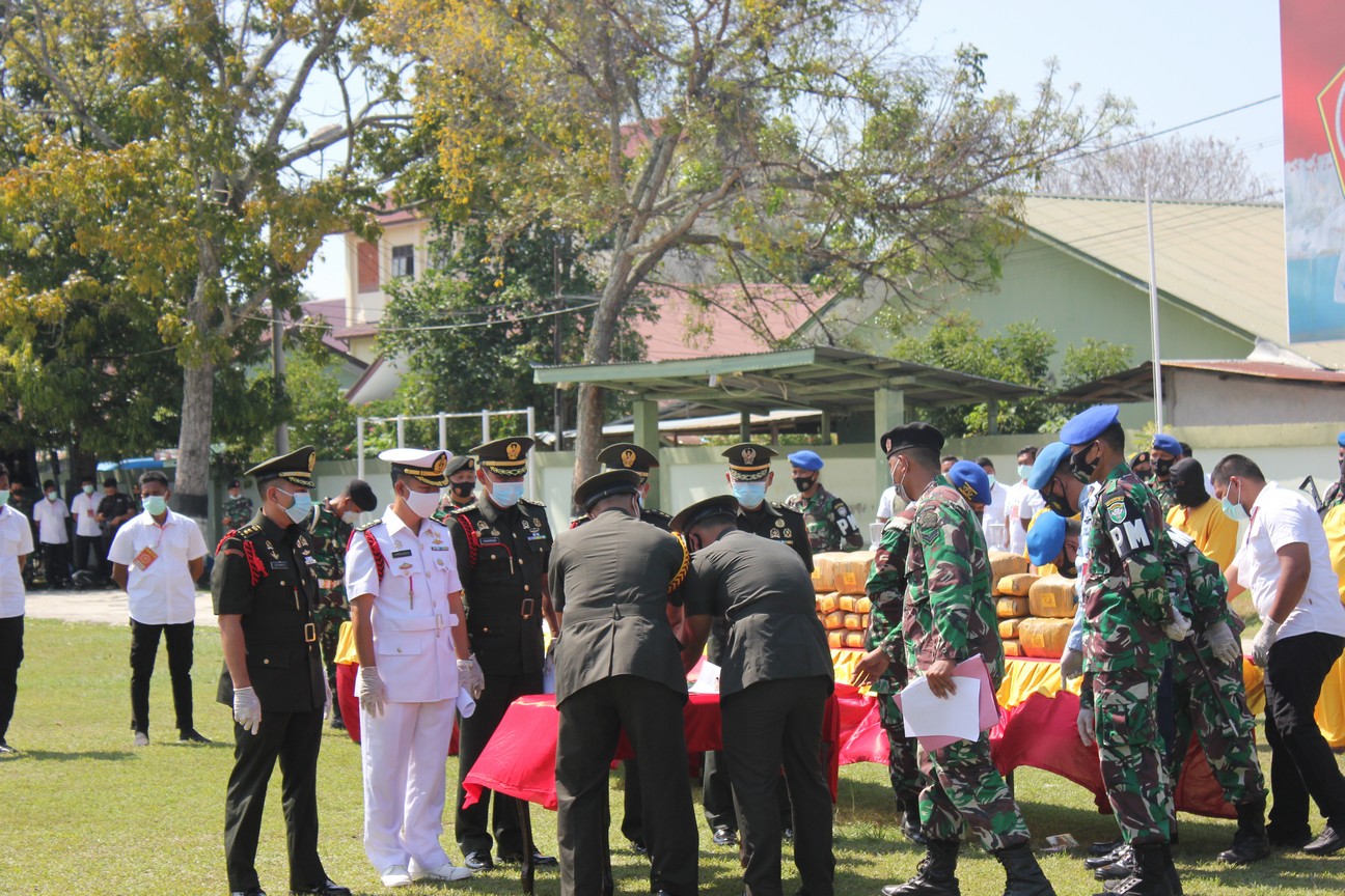 Pelaksanaan kegiatan pemusnahan barang bukti pada hari ini menjadi bukti bahwa, TNI juga sangat berkomitmen dalam membantu pihak Kepolisian dalam memberantas narkotika. Turut hadir pada pemusnahan barang bukti narkotika tersebut, Gubernur Aceh, Pangdam Iskandar Muda, Kapolda Aceh, dan Kajati Aceh, Ketua DPRA serta pejabat Forkopimda.
