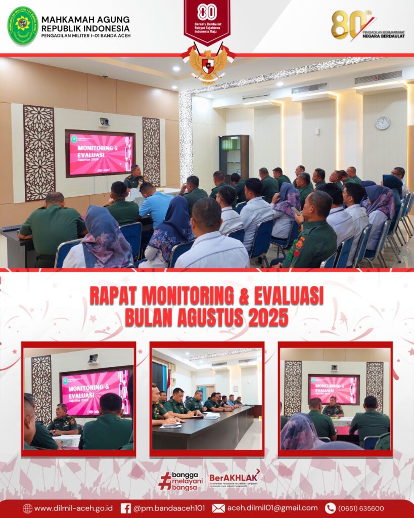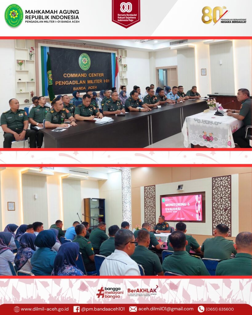 Dengan adanya rapat Monev ini, diharapkan seluruh personel Pengadilan Militer I-01 Banda Aceh semakin termotivasi untuk bekerja dengan penuh dedikasi, menjaga kehormatan institusi, dan terus berkontribusi positif dalam memberikan pelayanan terbaik bagi masyarakat pencari keadilan.