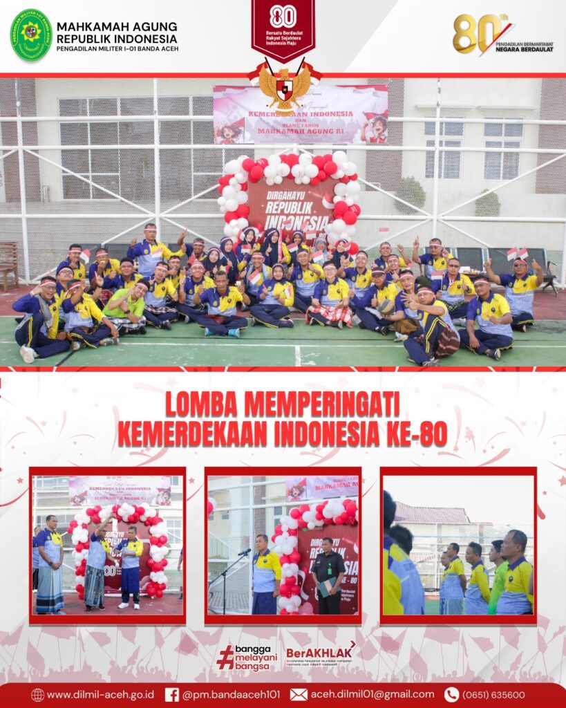 Suasana di Pengadilan Militer I-01 Banda Aceh hari ini penuh tawa, sorak sorai, dan semangat juang! Dalam rangka memperingati HUT RI ke-80, berbagai lomba seru digelar, mulai dari yang bikin tegang sampai yang bikin ngakak bareng