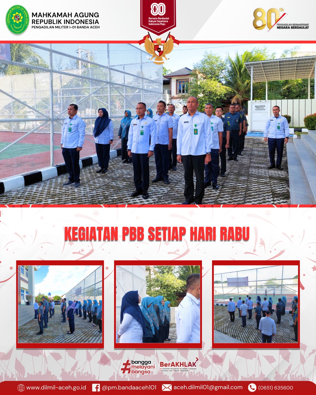 Banda Aceh – Rabu, 13 Agustus 2025. Telah dilaksanakan kegiatan PBB setiap rabu yang diikuti oleh seluruh personil Pengadilan Militer I-01 Banda Aceh. Kegiatan tersebut dipimpin oleh Kapten Chk Riswan Efendi, S.H