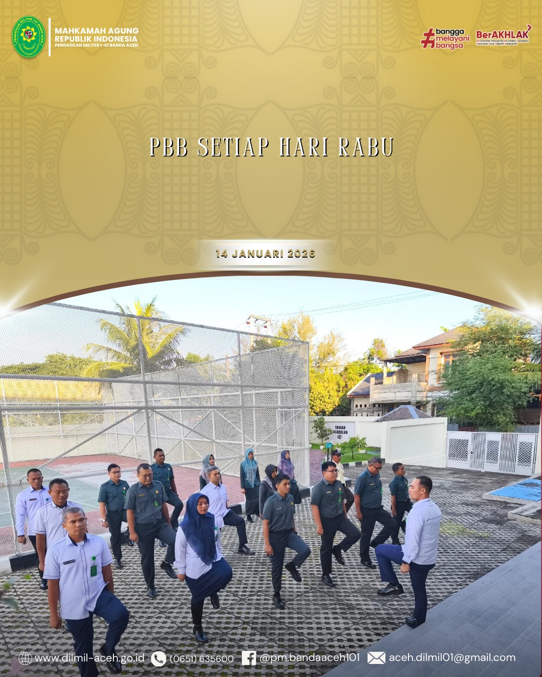 Banda Aceh, 19 Januari 2026. Pengadilan Militer I-01 Banda Aceh menyelenggarakan upacara bendera bulanan pada pagi hari dengan tertib dan penuh penghormatan. Upacara dipimpin oleh Kepala Pengadilan Militer I-01 Banda Aceh, Kolonel Chk Khamdan, S.Ag., S.H., M.H., dan diikuti seluruh personel Dilmil I-01 Banda Aceh. Kegiatan ini menjadi bagian dari pembinaan rutin untuk memperkuat sikap nasionalisme serta membangun kedisiplinan dalam pelaksanaan tugas sehari-hari.