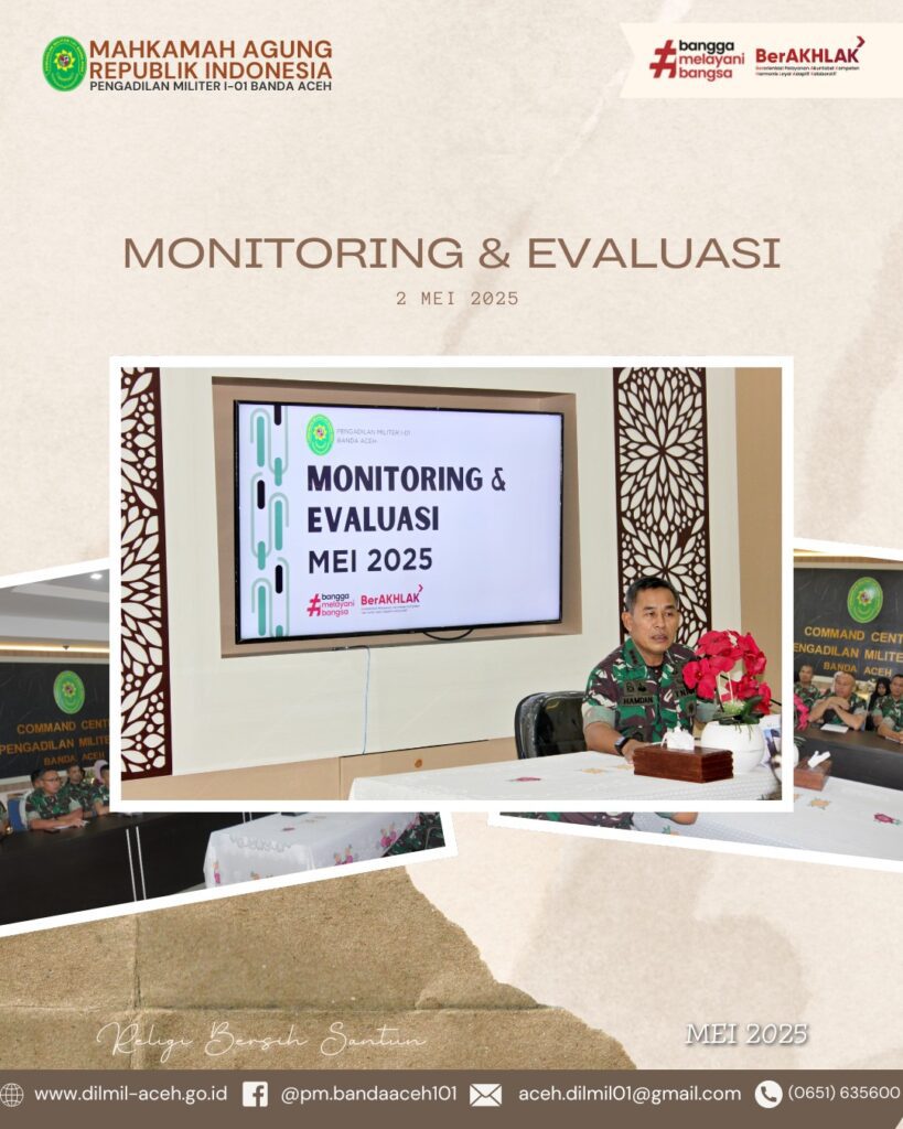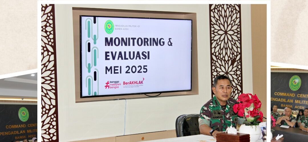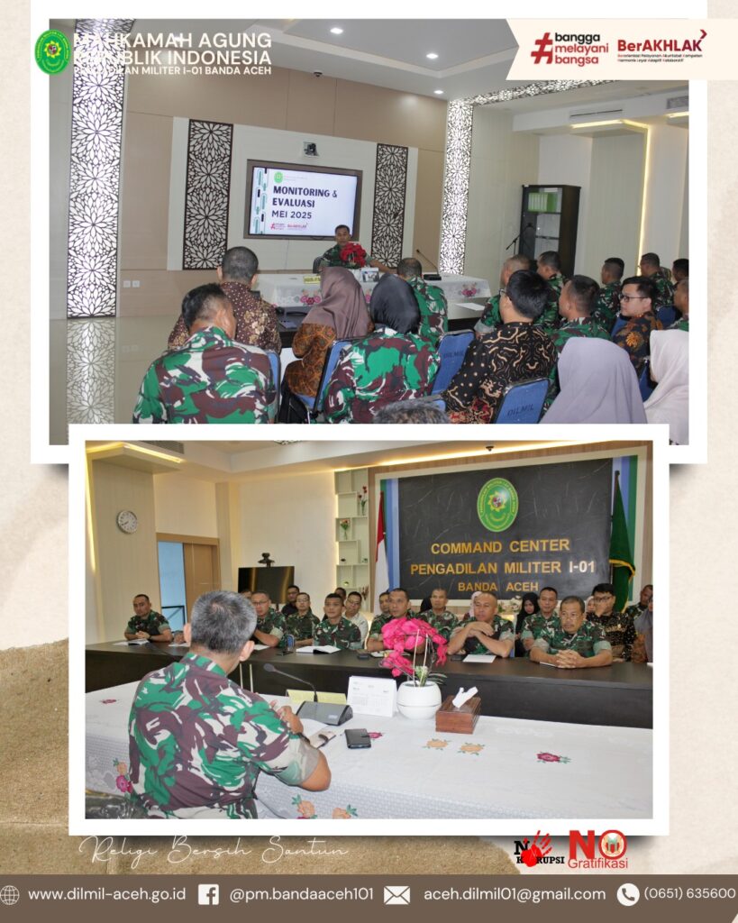 Banda Aceh – 2 Mei 2025. Telah dilaksanakan Rapat Monitoring Evaluasi Bulan Mei 2025 yang dipimpin oleh Kadilmil I-01 Banda Aceh Kolonel Chk Khamdan, S.Ag., S.H., M.H. Pada kegiatan monev bulan ini kadilmil menyampaikan