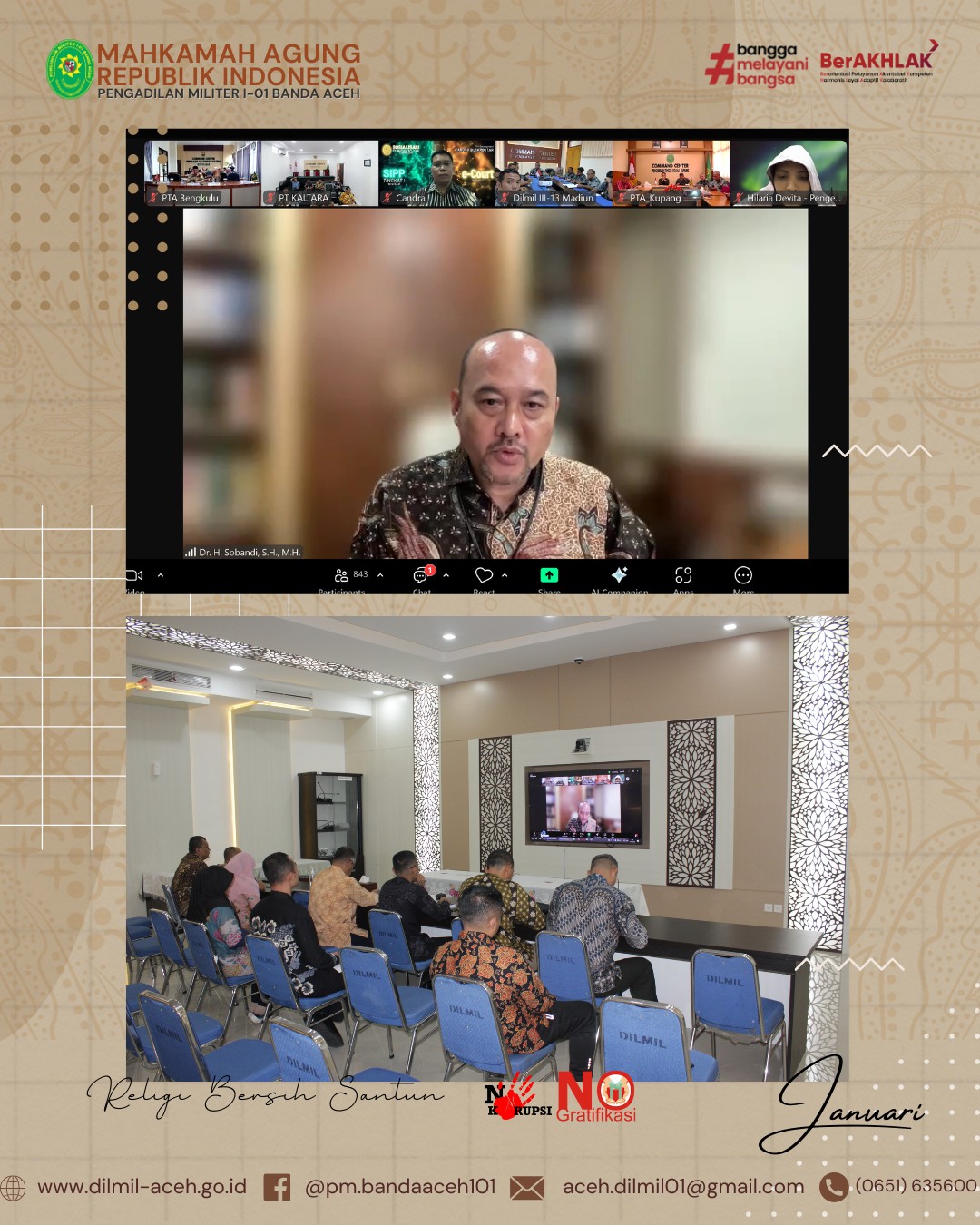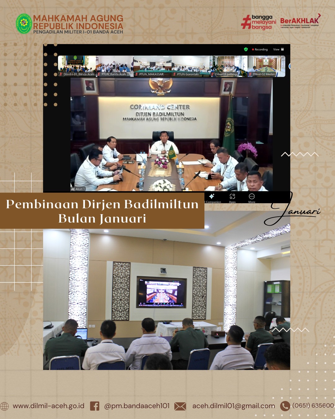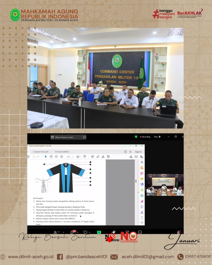 Banda Aceh – 13 Januari 2025, Personil Pengadilan Militer I-01 Banda Aceh mengikuti Pembinaan yang dilaksanakan secara daring oleh Direktorat Jenderal Badan Peradilan Militer dan Badan Peradilan Tata Usaha Negara dan diikuti seluruh Pegawai satker yang berada di Lingkungan Peradilan Militer dan Peradilan Tata Usaha Negara.
