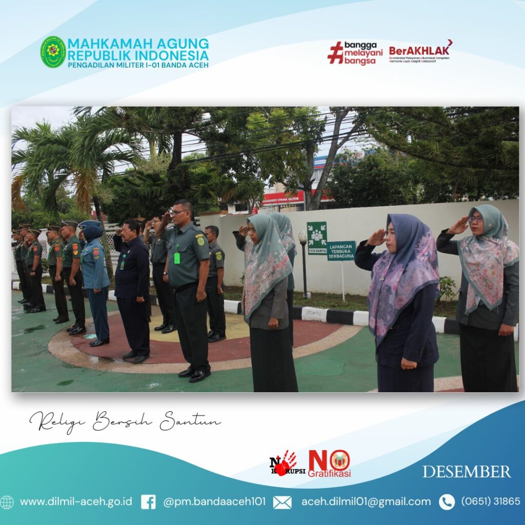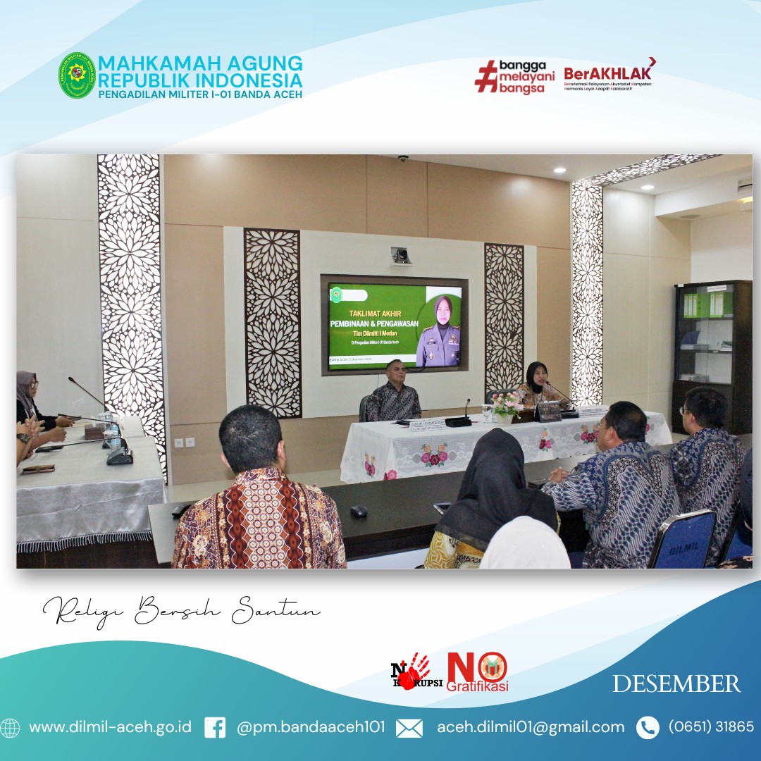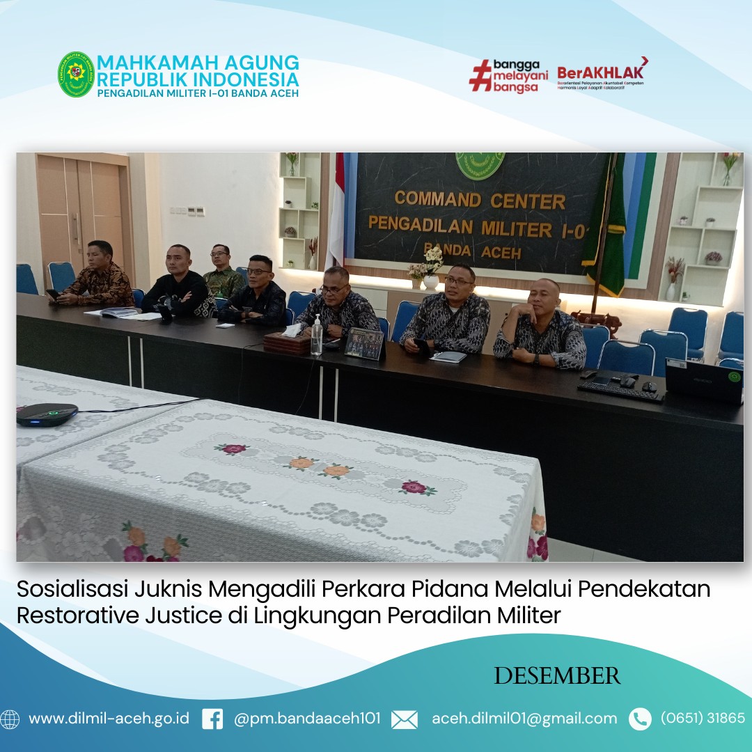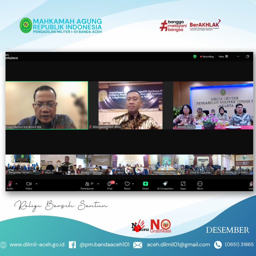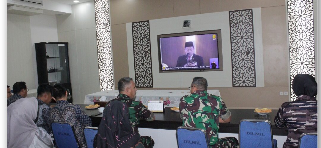 Banda Aceh – 27 Desember 2024. Kepala Pengadilan Militer I-01 Banda Aceh, Kolonel Kum M. Arif Zaki Ibrahim, S.H. beserta personel mengikuti kegiatan secara daring mengenai Refleksi Akhir Tahun Mahkamah Agung RI Tahun 2024 melalui Channel Youtube Mahkamah Agung RI. Kegiatan Refleksi Akhir Tahun Mahkamah Agung RI Tahun 2024 ini dipimpin oleh YM Ketua Mahkamah Agung RI Prof. Dr. H. Sunarto, S.H., M.H.
