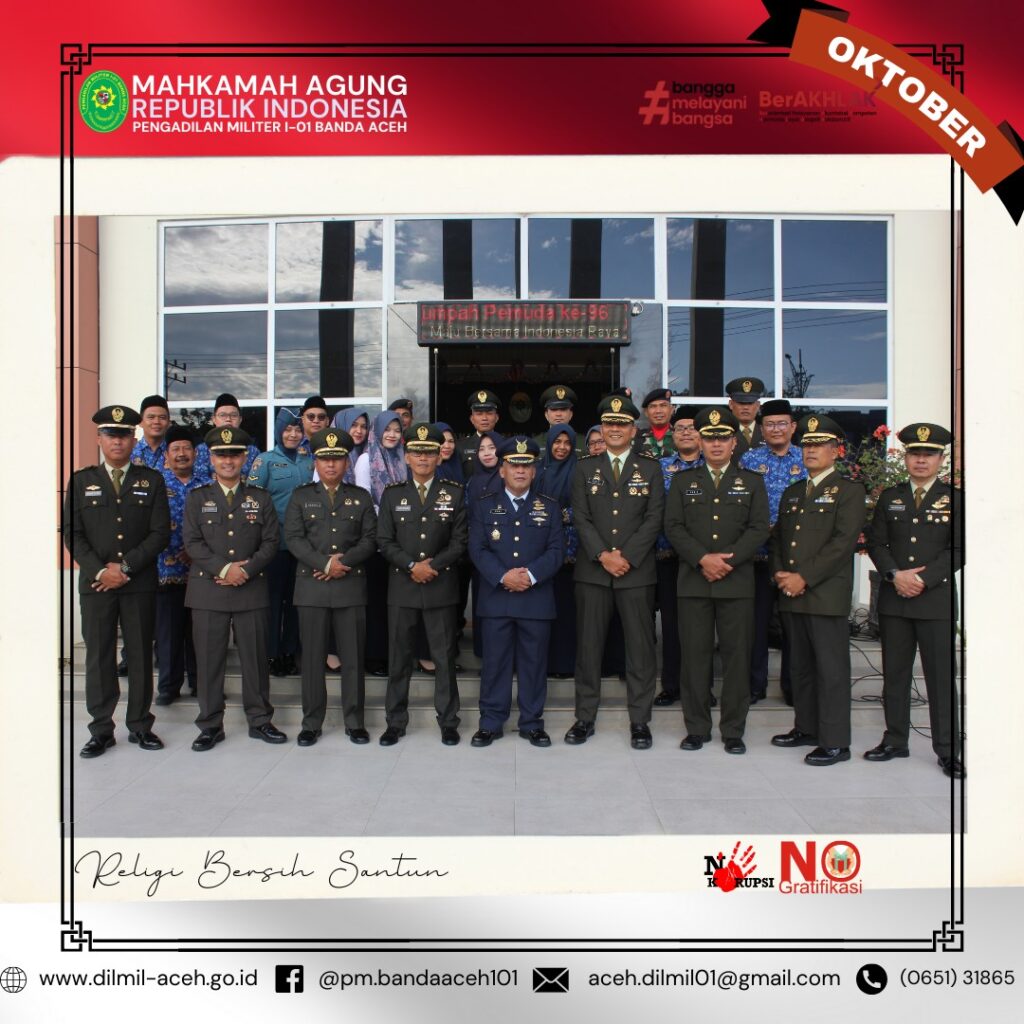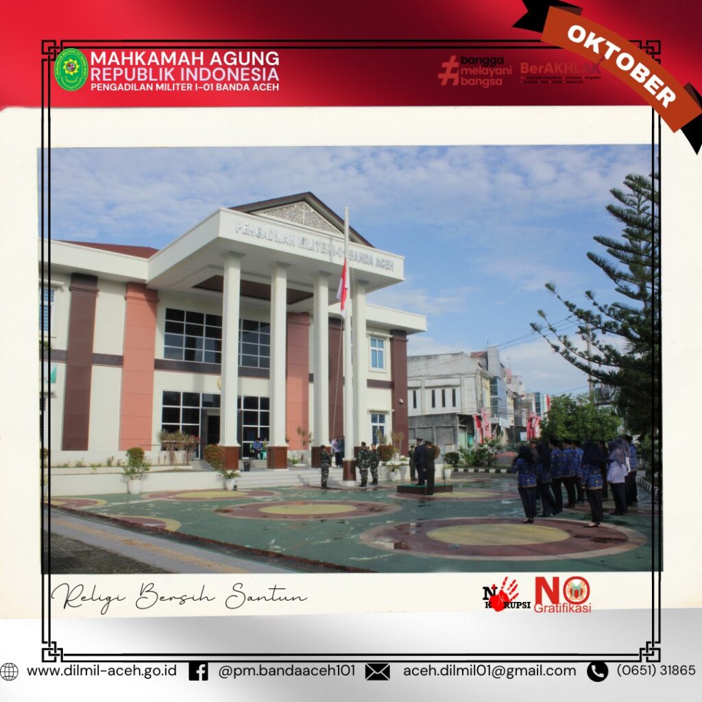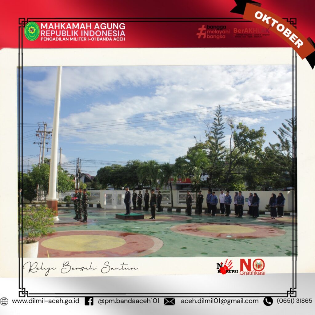 Banda Aceh – 10 November 2024. Pengadilan Militer I-01 Banda Aceh melaksanakan Upacara Peringatan Hari Pahlawan Tahun 2024. Upacara dipimpin oleh Kepala Pengadilan Militer I-01 Banda Aceh, Kolonel Kum M. Arif Zaki Ibrahim, S.H. selaku Inspektur Upacara dan diikuti oleh seluruh personil Dilmil I-01 Banda Aceh beserta personil Otmil I-01 Banda Aceh.