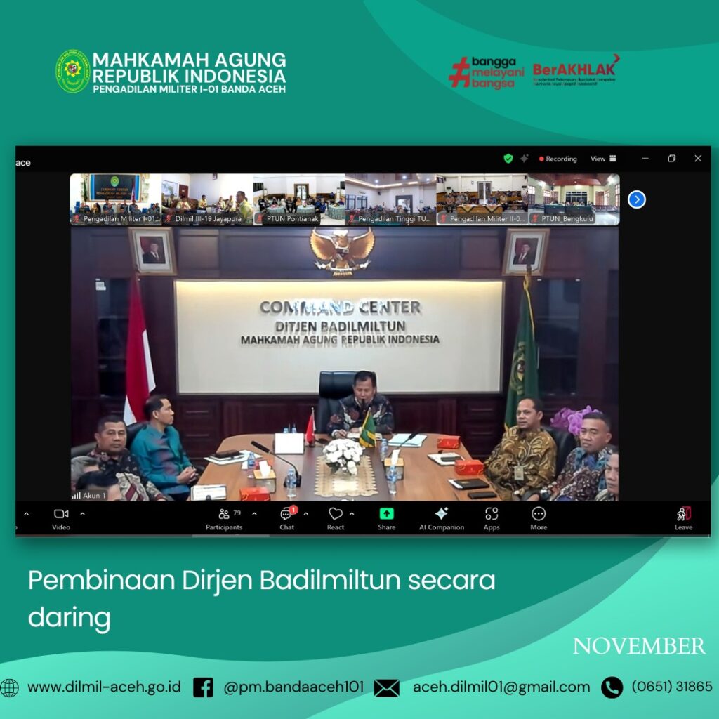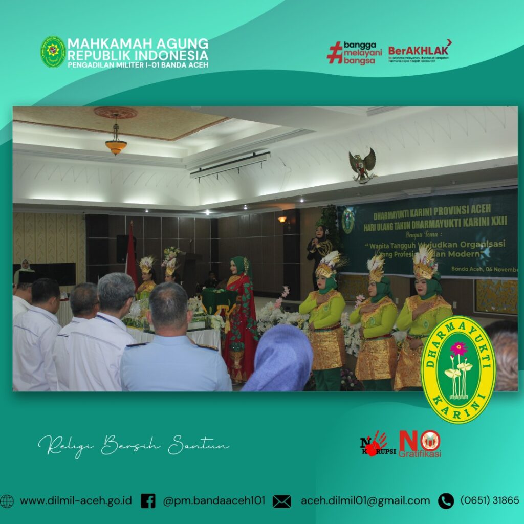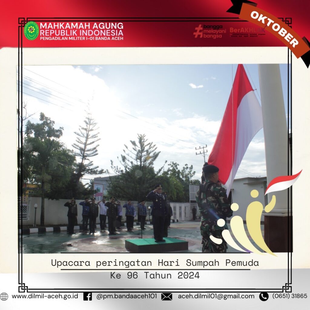 Banda Aceh – 10 November 2024. Pengadilan Militer I-01 Banda Aceh melaksanakan Upacara Peringatan Hari Pahlawan Tahun 2024. Upacara dipimpin oleh Kepala Pengadilan Militer I-01 Banda Aceh, Kolonel Kum M. Arif Zaki Ibrahim, S.H. selaku Inspektur Upacara dan diikuti oleh seluruh personil Dilmil I-01 Banda Aceh beserta personil Otmil I-01 Banda Aceh.