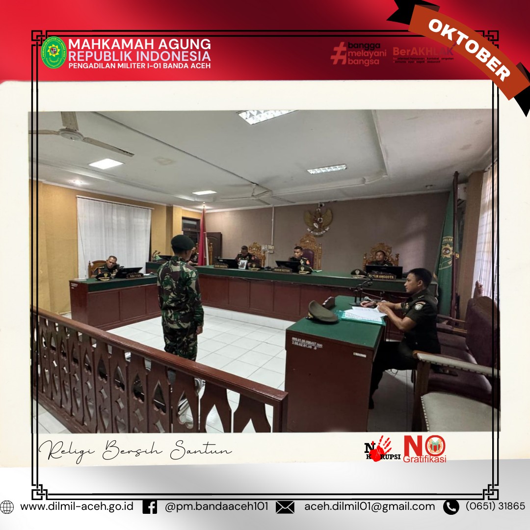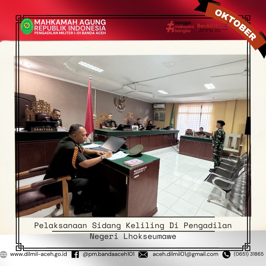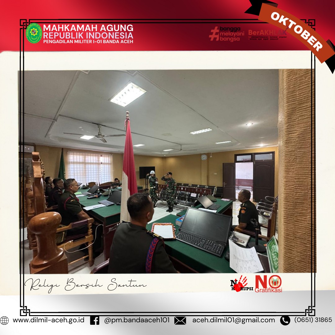 Banda Aceh – 25 Oktober 2024. Bertempat di Ruang Auditorium, Kepala Pengadilan Militer I-01 Banda Aceh Kolonel Kum M. Arif Zaki Ibrahim, S.H. beserta seluruh Personel melaksanakan acara perpisahan dan Pengantar Alih Tugas Angpokkimmil Mayor Chk Indra Gunawan S.H., M.H. yang akan pindah tugas ke Dilmil I-02 Medan.