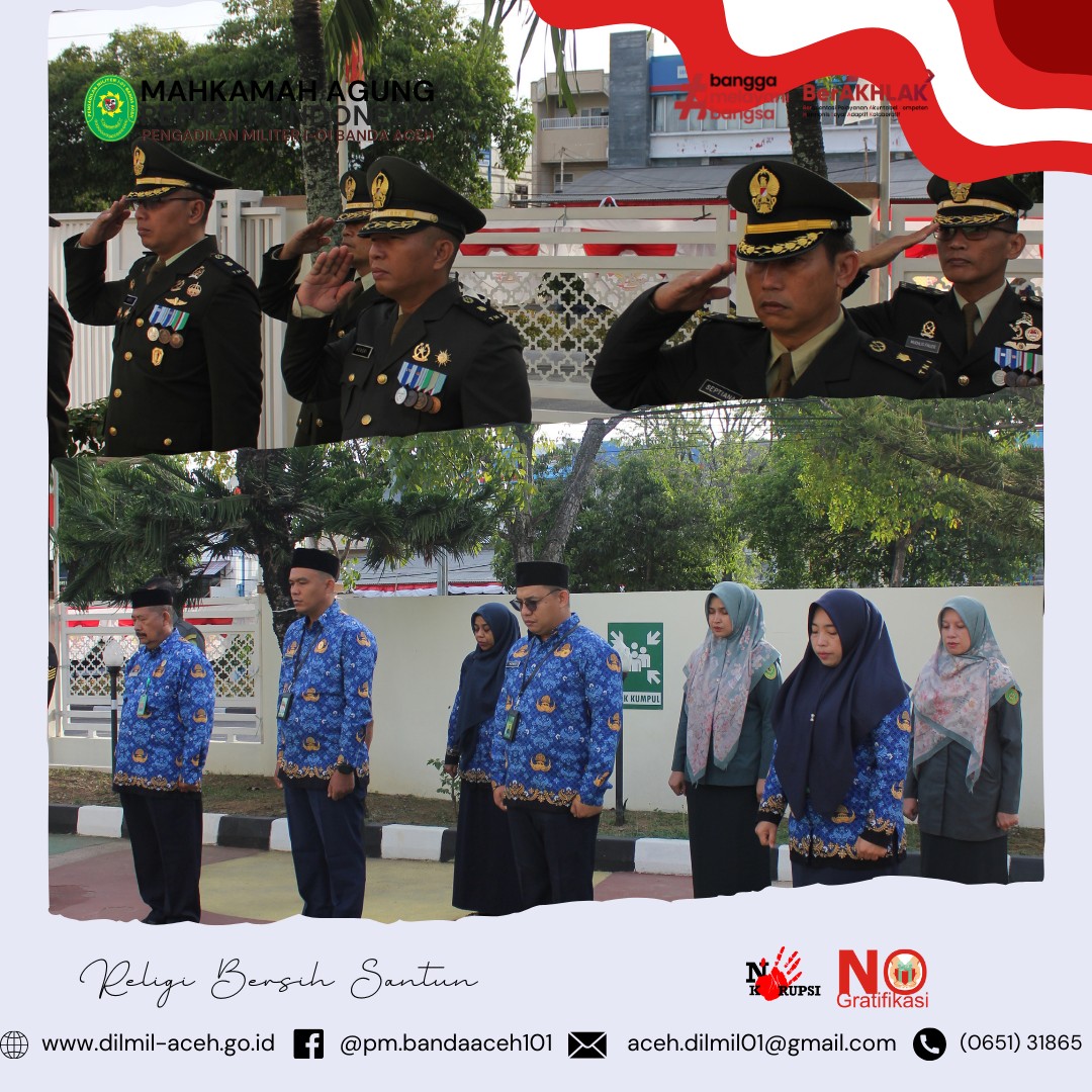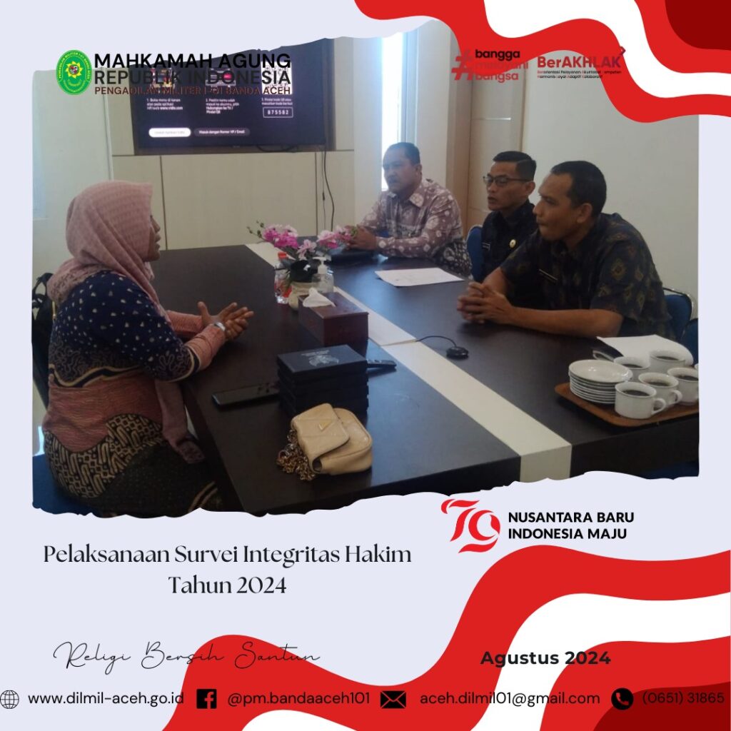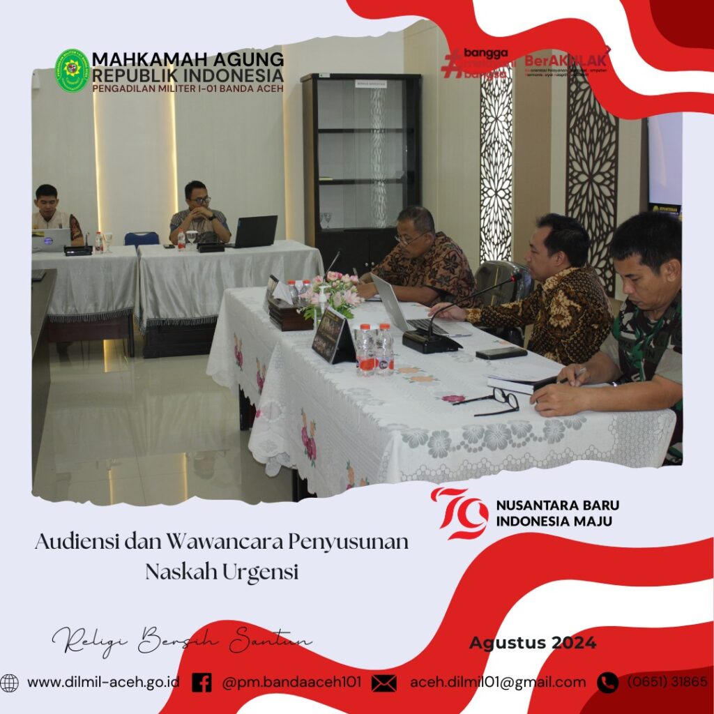 Banda Aceh – 31 Agustus 2024. Kepala Pengadilan Militer I-01 Banda Aceh, Kolonel Kum M. Arif Zaki Ibrahim, S.H. beserta personel mengikuti acara secara daring Pagelaran Wayang Kulit 1 Layar 3 Dalang dengan lakon “WAHYU CAKRANINGRAT” yang diselenggarakan oleh Mahkamah Agung RI dalam rangka memperingati HUT Mahkamah Agung RI ke 79 Tahun 2024.