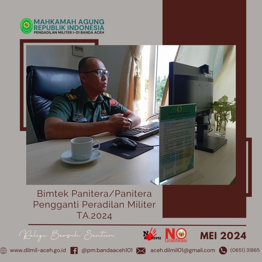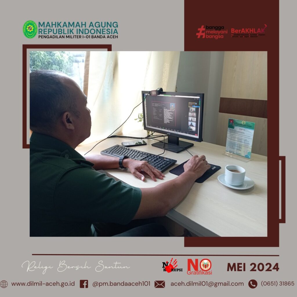 Banda Aceh – 1 Juni 2024. Pengadilan Militer I-01 Banda Aceh melaksanakan Upacara Hari Lahir Pancasila Tahun 2024 bertempat di lapangan upacara Pengadilan Militer I-01 Banda Aceh dengan Inspektur upacara yaitu Kadilmil I-01 Banda Aceh Kolonel Kum M. Arif Zaki Ibrahim, S.H. dan diikuti oleh seluruh personil Dilmil I-01 Banda Aceh. Adapun tema Peringatan Hari Lahir Pancasila Tahun ini adalah “Pancasila Jiwa Pemersatu Bangsa Menuju Indonesia Emas Tahun 2045”