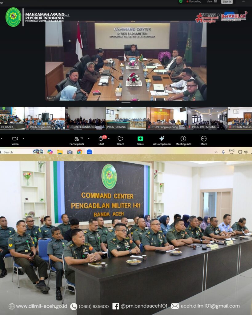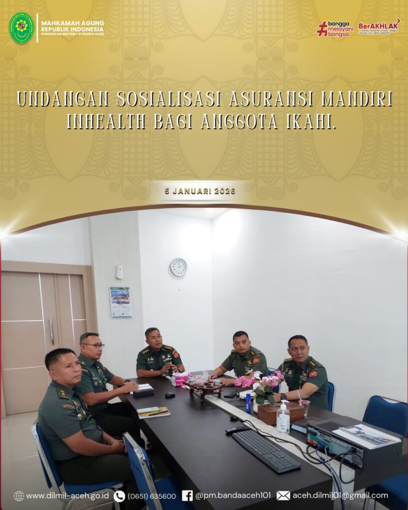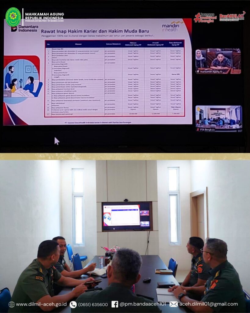 Banda Aceh – 5 Januari 2026. Pengadilan Militer I-01 Banda Aceh mengikuti kegiatan Sosialisasi Asuransi Mandiri Inhealth bagi Anggota IKAHI Tahun 2026 yang diselenggarakan secara daring.