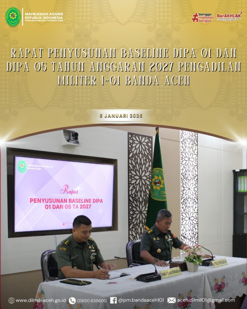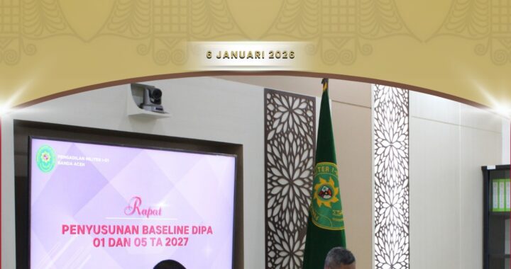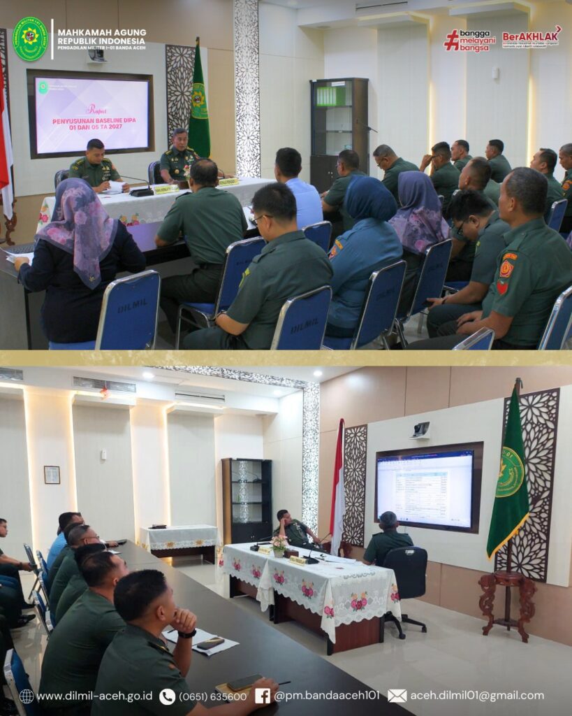 Banda Aceh – 6 Januari 2026. Rapat penyusunan baseline Dipa 01 dan Dipa 05 Tahun Anggaran 2027 Pengadilan Militer I-01 Banda Aceh. Sehubungan dengan akan disusunnya Rencana Kebutuhan Anggaran Mahkamah Agung dan Badan Peradilan dibawahnya TA 2027.