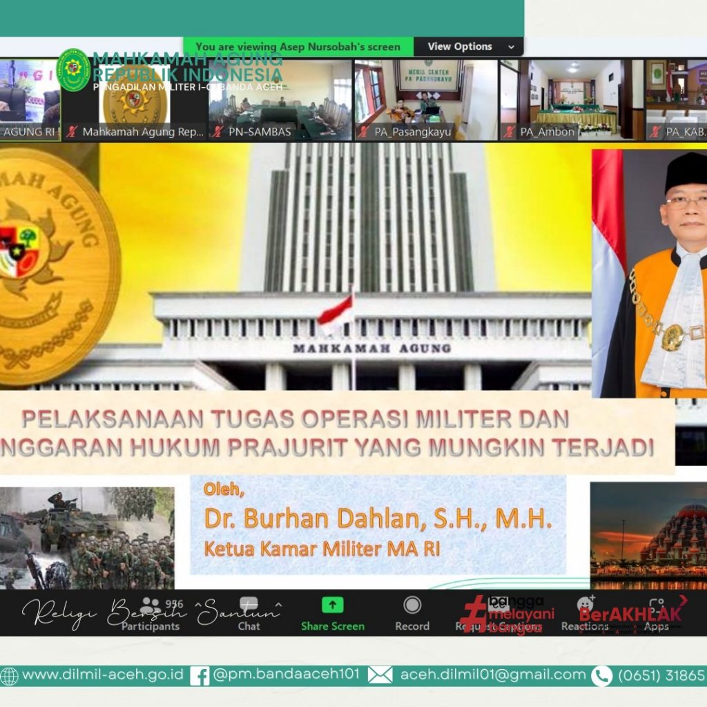 Banda Aceh – 14 Juli 2023, Tim dari Badan Litbang Diklat Hukum dan Peradilan Mahkamah Agung Republik Indonesia berkunjung ke Pengadilan Militer -01 Banda Aceh dengan Bapak Asep Nursobah, S.Ag., M.H. (Hakim Yustisial Pada Biro Hukum dan Humas Badan Urusan Administrasi MA RI) sebagai Ketua Tim. Rombongan datang pada pukul 9.00 WIB, disambut oleh Kepala Pengadilan Militer I-01 Banda Aceh, Letkol Sus M. Arif Zaki Ibrahim, S.H.. Adapun kunjungan tersebut adalah dalam rangka audensi dan wawancara mengenai Penyusunan Naskah Urgensi Tahun Anggaran 2023 dengan Judul “Pembentukan Keputusan Ketua Mahkamah Agung Tentang Tata Laksana Pengelolaan Berkas Perkara Elektronik Dalam Upaya Hukum Kasasi dan Peninjauan Kembali Secara Elektronik”,