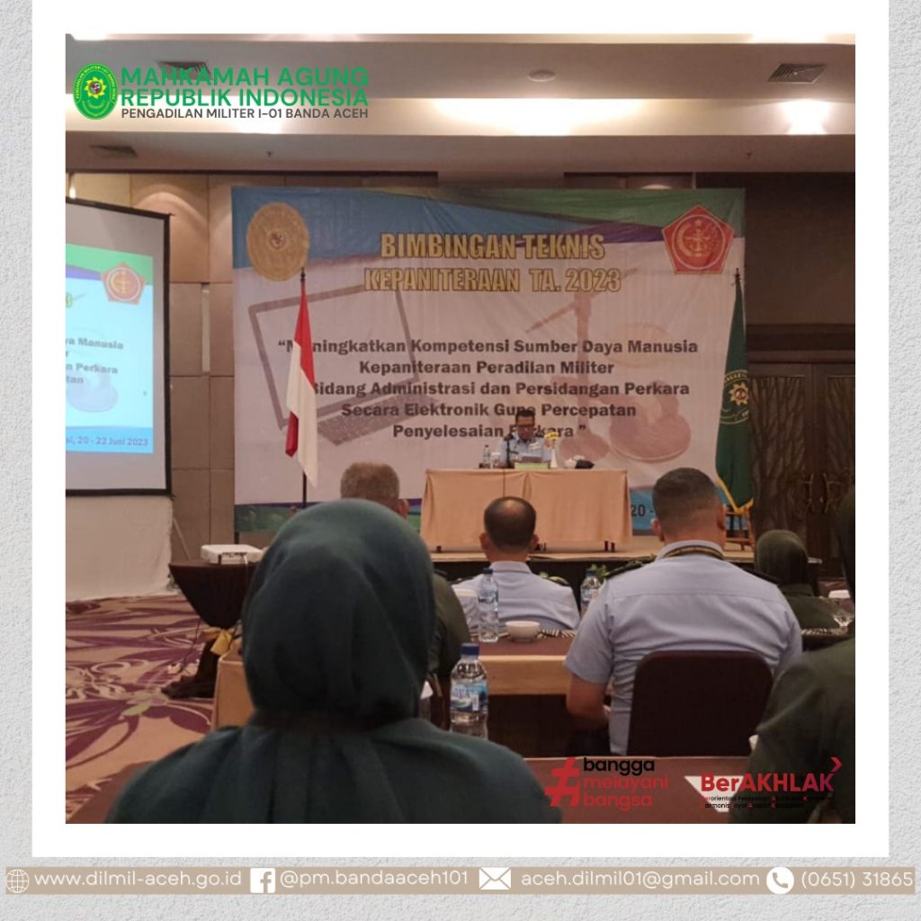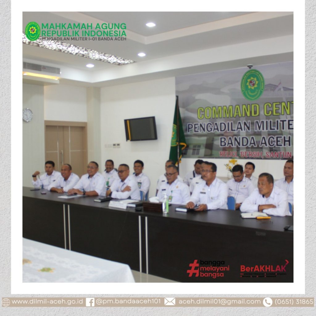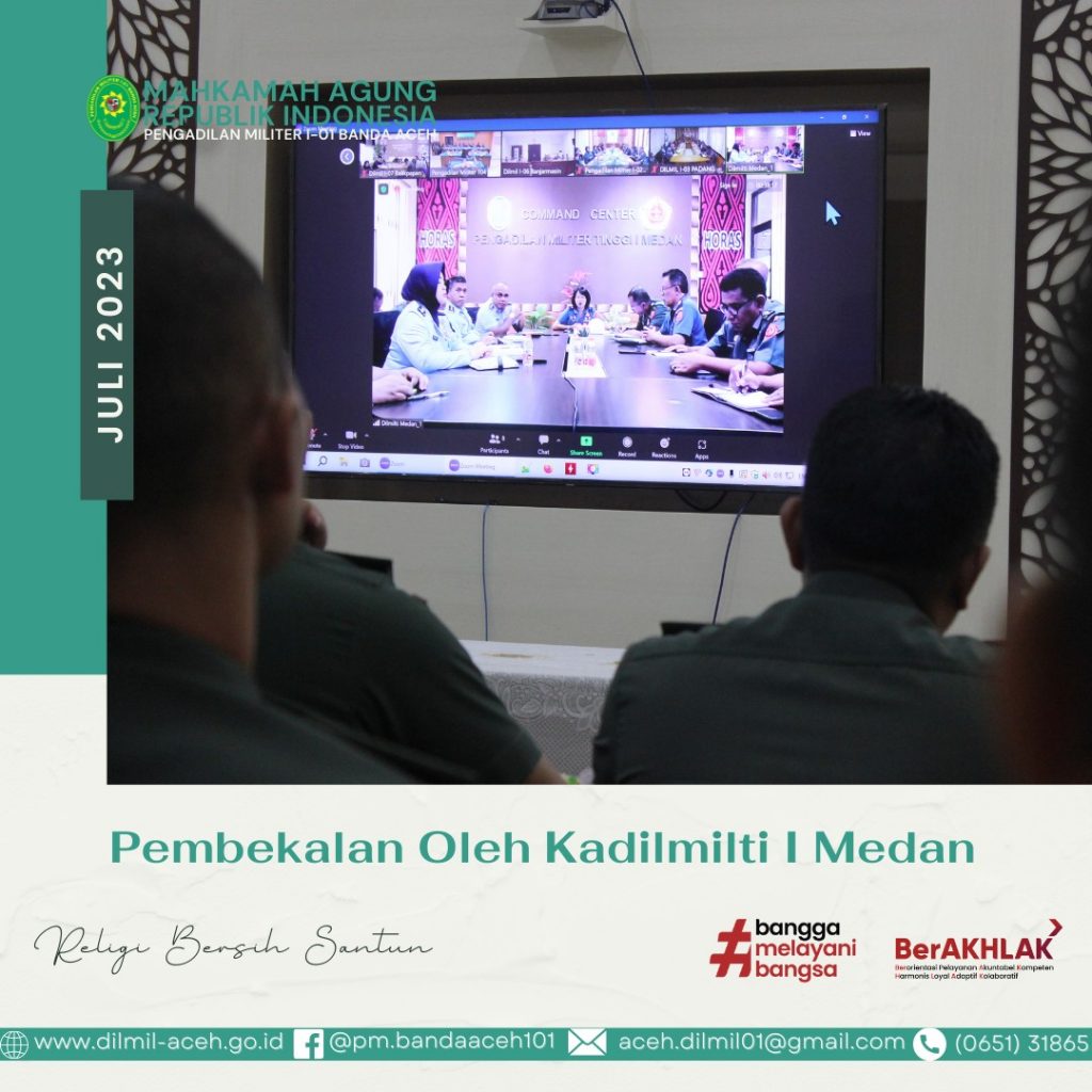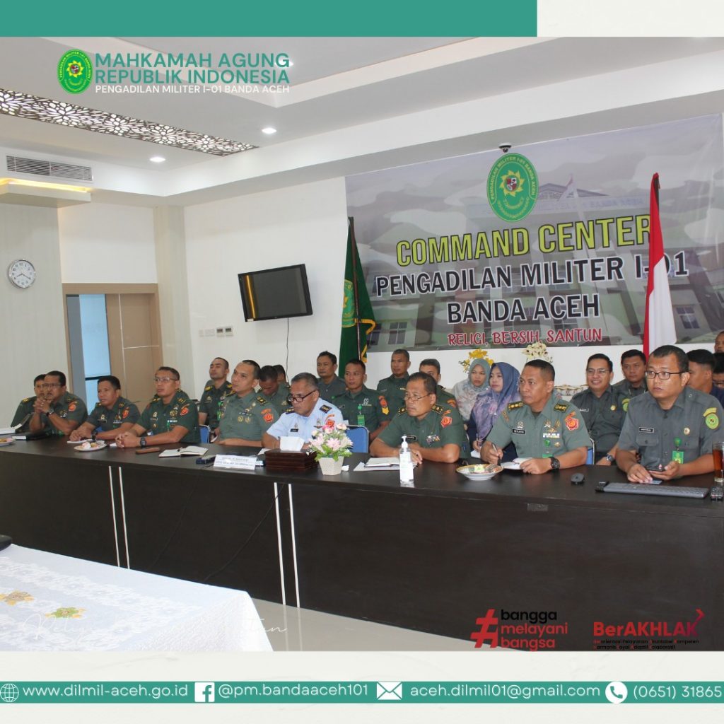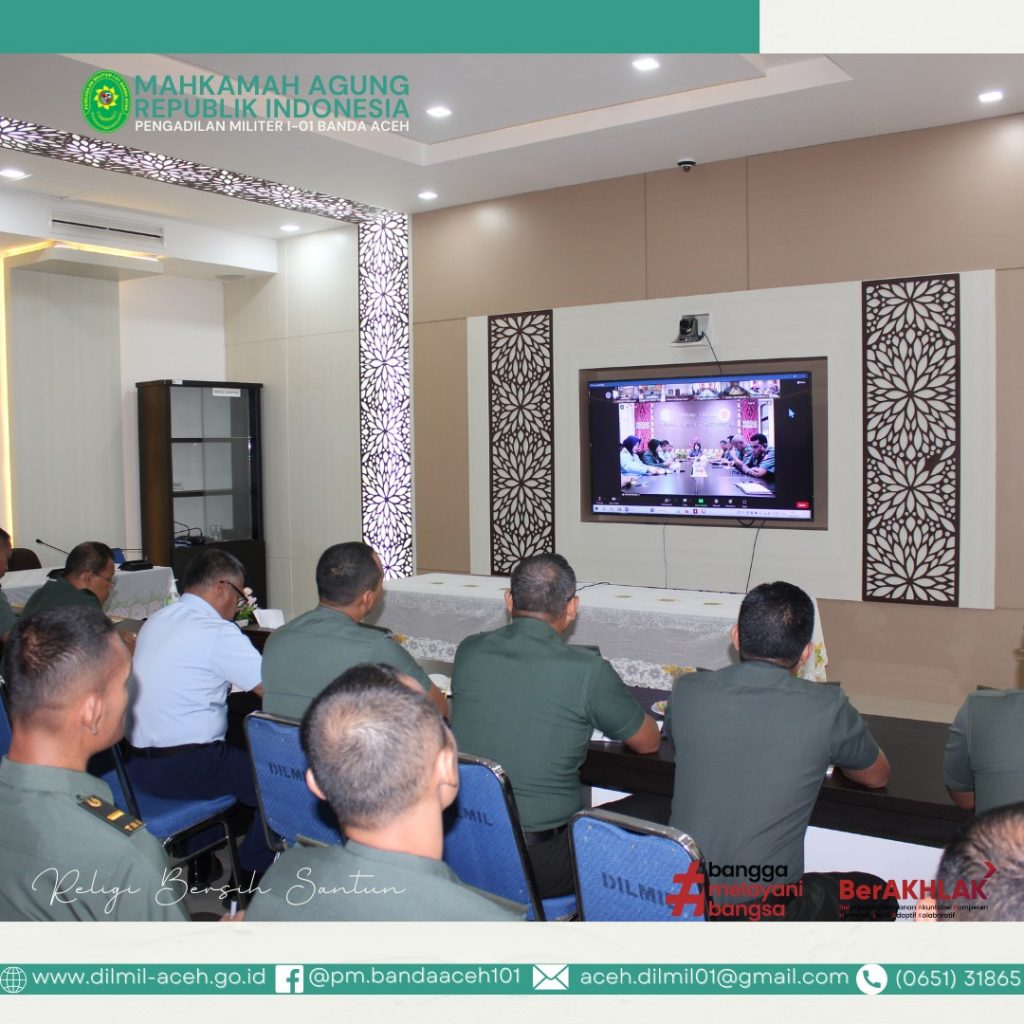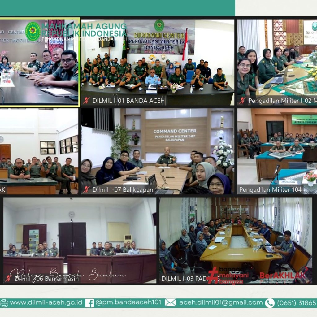 Banda Aceh – 4 Juli 2023. Kepala Pengadilan Militer I-01 Banda Aceh, Letkol Sus M. Arif Zaki Ibrahim, S.H. beserta seluruh personil mengikuti kegiatan Pembekalan oleh Kadilmilti I Medan Laksamana Pertama TNI Tuty Kiptiani, S.H., M.H. yang diselenggarakan secara Daring. Kadilmilti I Medan menekankan untuk menjaga integritas dan menjalankan kode etik bagi Hakim, ASN serta perjanjian kerja bagi PPNPN di satuan kerja masing-masing.