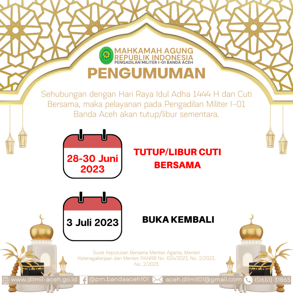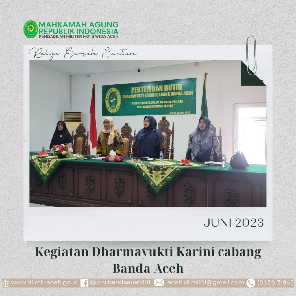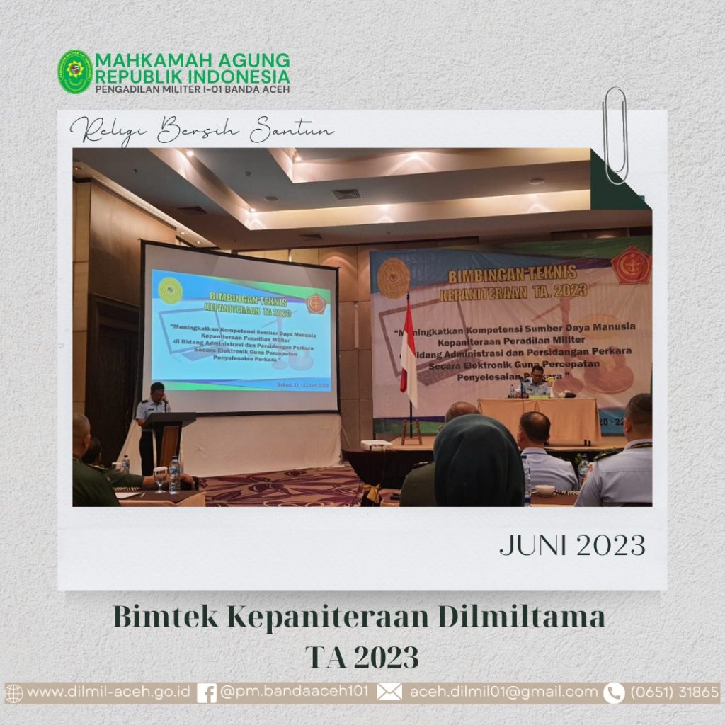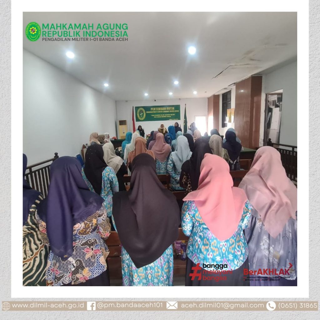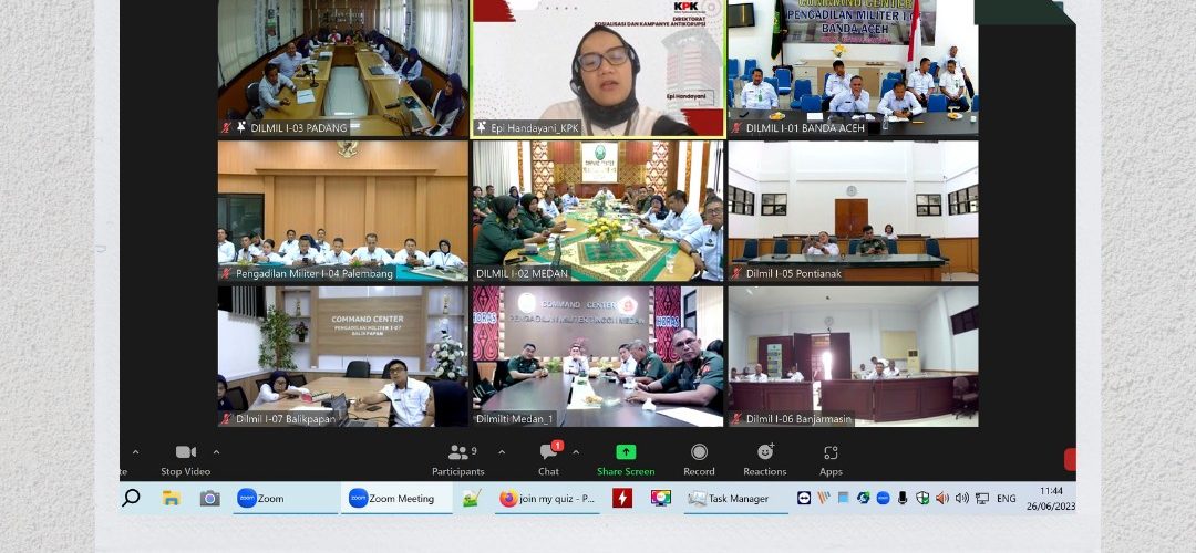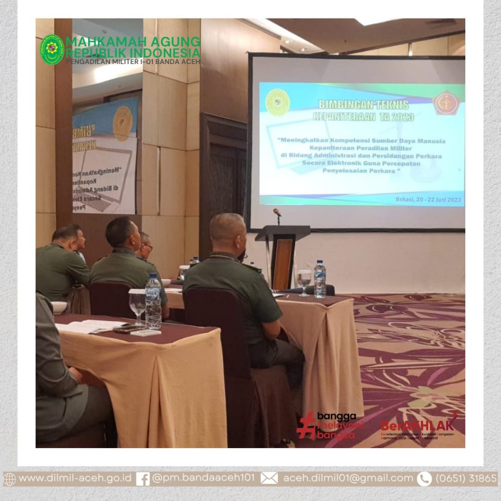 Banda Aceh – 4 Juli 2023. Kepala Pengadilan Militer I-01 Banda Aceh, Letkol Sus M. Arif Zaki Ibrahim, S.H. beserta seluruh personil mengikuti kegiatan Pembekalan oleh Kadilmilti I Medan Laksamana Pertama TNI Tuty Kiptiani, S.H., M.H. yang diselenggarakan secara Daring. Kadilmilti I Medan menekankan untuk menjaga integritas dan menjalankan kode etik bagi Hakim, ASN serta perjanjian kerja bagi PPNPN di satuan kerja masing-masing.
