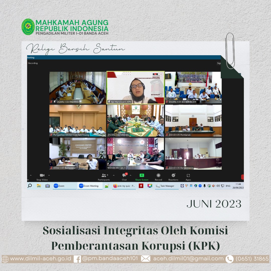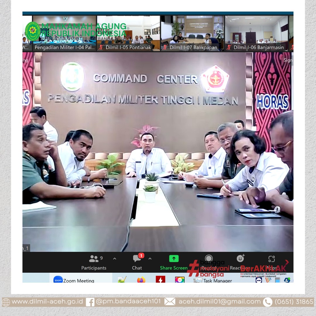 Banda Aceh – 4 Juli 2023. Kepala Pengadilan Militer I-01 Banda Aceh, Letkol Sus M. Arif Zaki Ibrahim, S.H. beserta seluruh personil mengikuti kegiatan Pembekalan oleh Kadilmilti I Medan Laksamana Pertama TNI Tuty Kiptiani, S.H., M.H. yang diselenggarakan secara Daring. Kadilmilti I Medan menekankan untuk menjaga integritas dan menjalankan kode etik bagi Hakim, ASN serta perjanjian kerja bagi PPNPN di satuan kerja masing-masing.