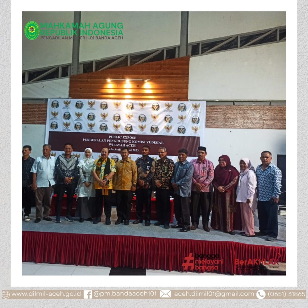 Banda Aceh – 14 Juni 2023. Kepala Pengadilan Militer I-01 Banda Aceh, Letkol Sus M. Arif Zaki Ibrahim, S.H. menghadiri undangan acara Public Expose Penghubung Komisi Yudisial RI Wilayah Aceh bertempat di Kuala Village – Banda Aceh.