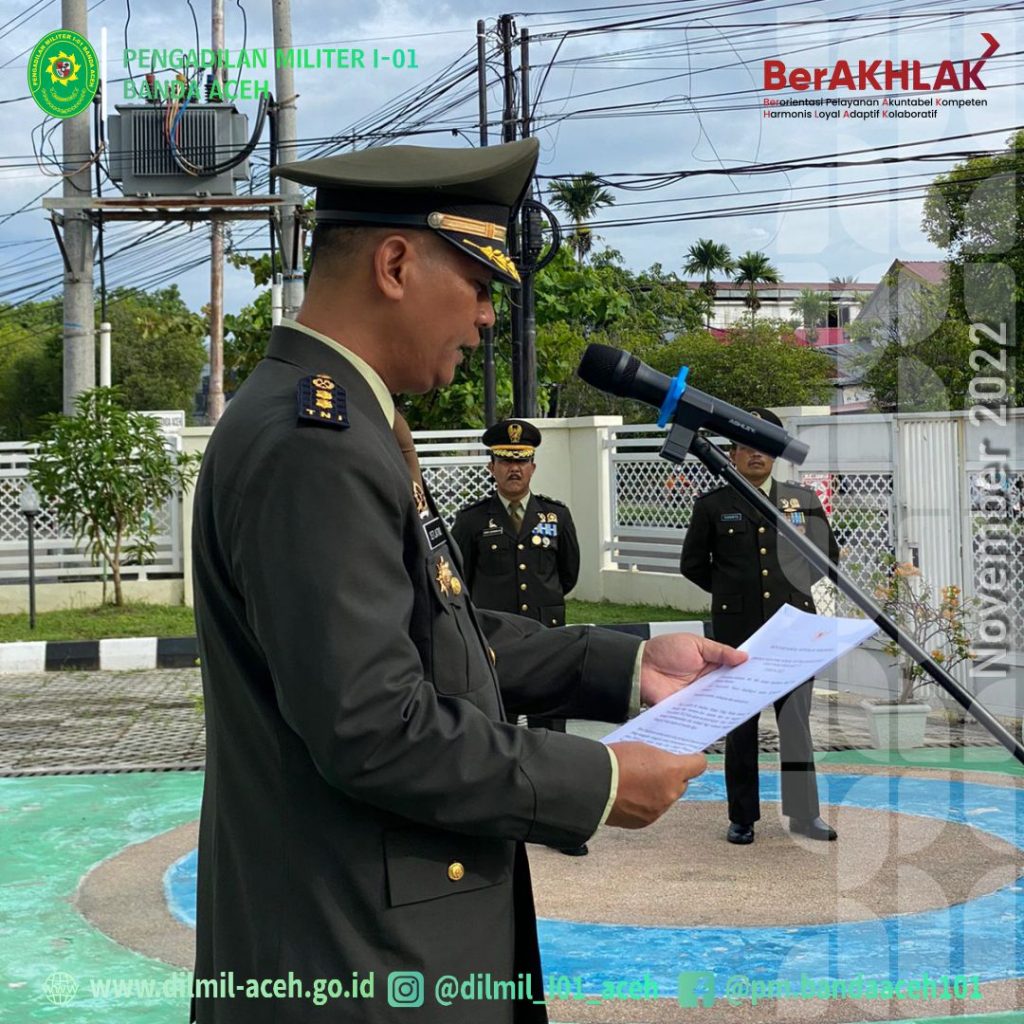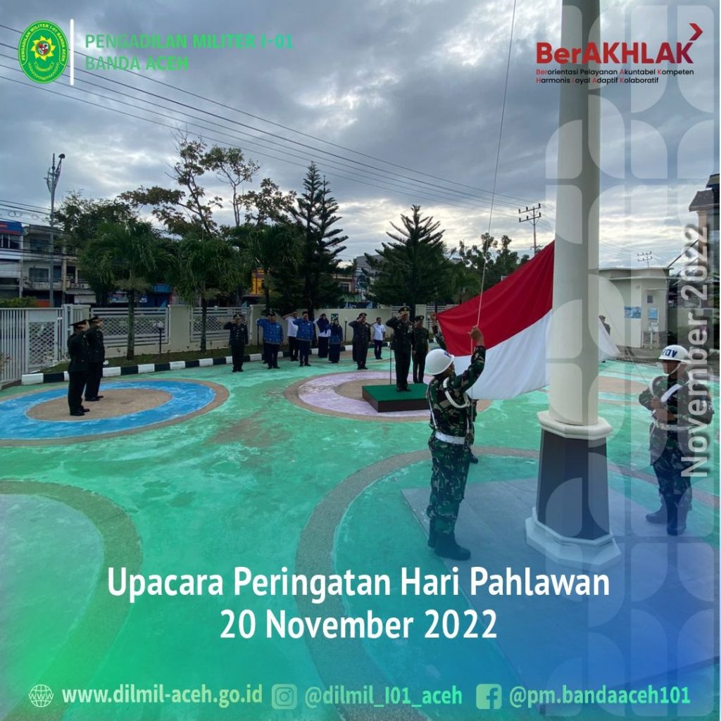 Banda Aceh – 10 November 2022. Bertempat di halaman kantor Pengadilan Militer I-01 Banda Aceh telah dilaksanaan Upacara Hari Pahlawan 10 November 2022, bertindak sebagai Inspektur Upacara Plh. Kadilmil I-01 Banda Aceh Letkol Chk Setijatno, S.H. dan di ikuti oleh seluruh personil Dilmil I-01 Banda Aceh.