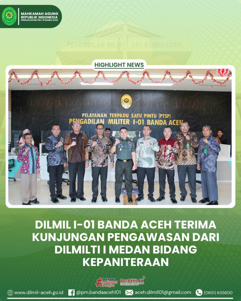 Banda Aceh – 13 November 2025. Pengadilan Militer I-01 Banda Aceh menerima kunjungan pengawasan dari Pengadilan Militer Tinggi I Medan.