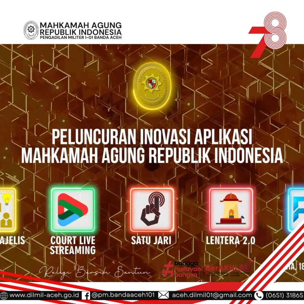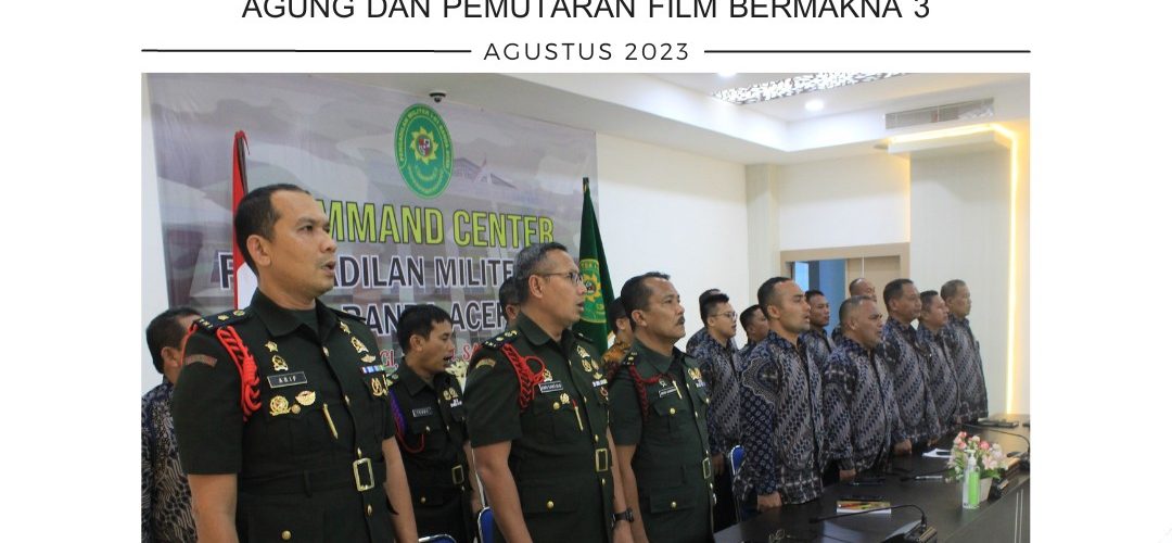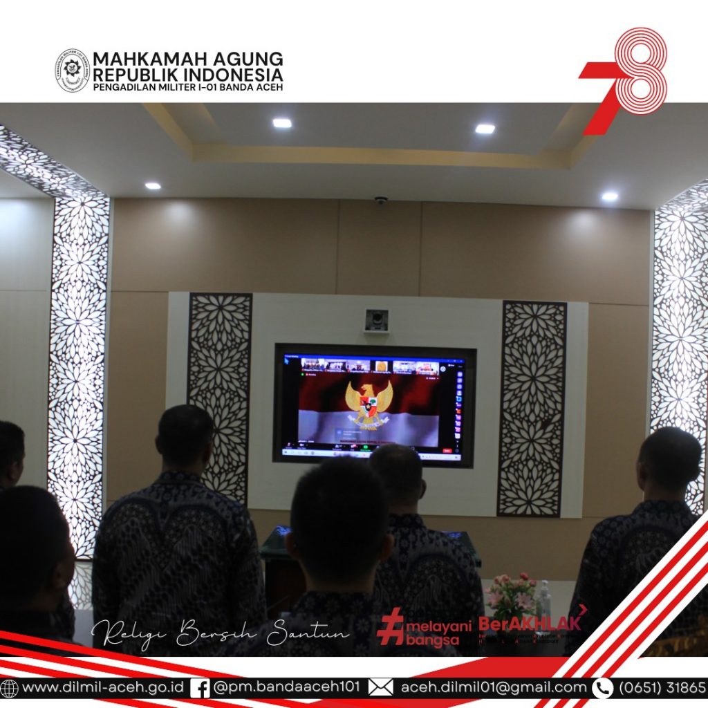 Banda Aceh, 18 Agustus 2023. Kadilmil I-01 Banda Aceh Letkol Sus M. Arif Zaki Ibrahim, S.H. beserta Hakim Militer, Panitera, Sekretaris, Kasubbag dan staf mengikuti Peringatan Hari Ulang Tahun Ke-78 Mahkamah Agung RI dengan agenda acara yakni launching aplikasi Mahkamah Agung RI, Anugerah Mahkamah Agung, dan Pemutaran film “Pesan Bermakna 3”.