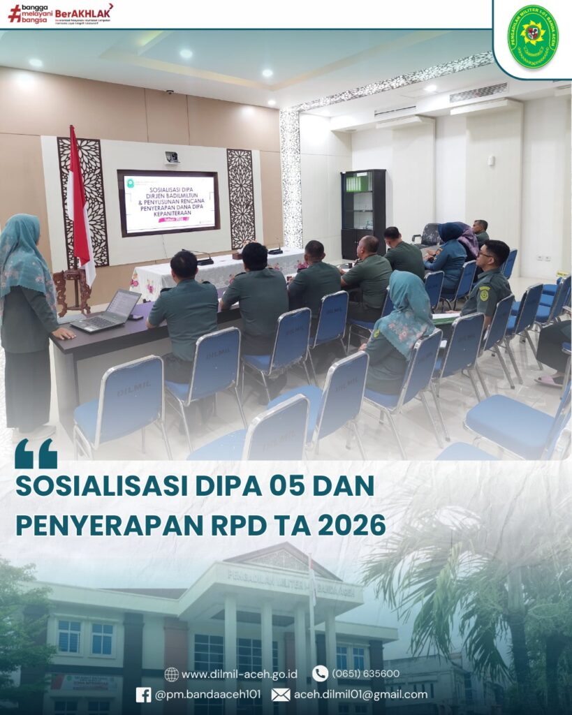 Banda Aceh, 17 Desember 2025. Sosialisasi DIPA Satker 663183 dan penyerapan RPD TA 2026 menjadi ruang bersama untuk menyamakan pemahaman dan kesiapan pelaksanaan anggaran. Kegiatan ini membahas arah perencanaan, strategi penyerapan, serta pengendalian anggaran agar pelaksanaan tahun 2026 berjalan tertib, terukur, dan sesuai ketentuan.