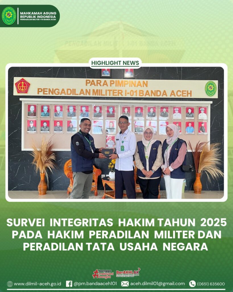 Banda Aceh – 19 November 2025. Penyampaian surat resmi dari Komisi Yudisial RI terkait pelaksanaan Survei Integritas Hakim Tahun 2025. Langkah ini merupakan bagian dari upaya penguatan lembaga peradilan menuju sistem peradilan yang berintegritas, kredibel, dan akuntabel.
