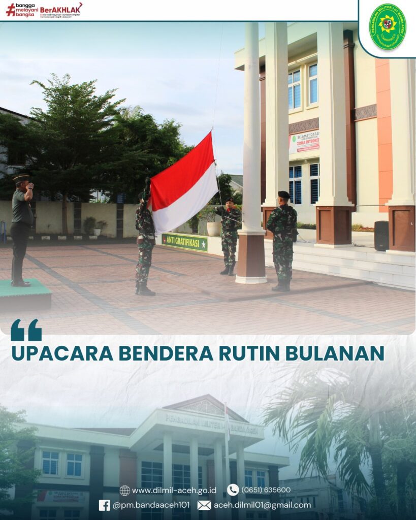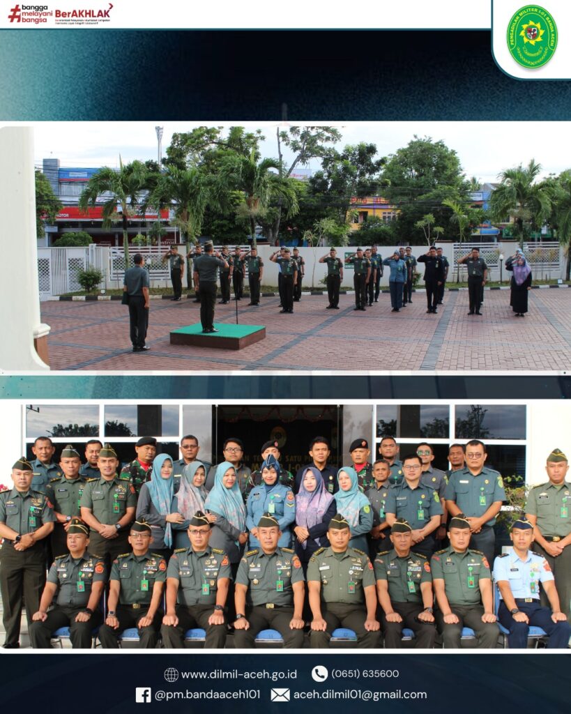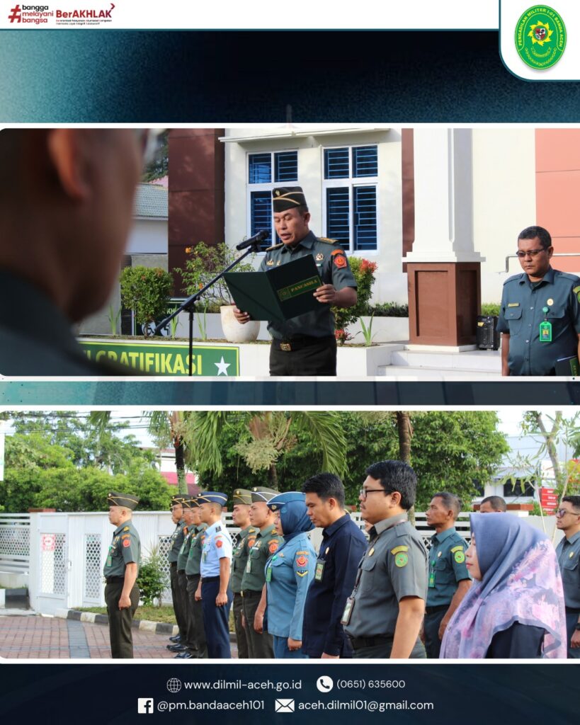 Banda Aceh, 17 Desember 2025. Pengadilan Militer I-01 Banda Aceh melaksanakan Upacara Bendera Rutin Bulanan yang berlangsung khidmat pada pagi hari ini. Bertindak selaku inspektur upacara, Kepala Pengadilan Militer I-01 Banda Aceh, Kolonel Chk Khamdan, S.Ag., S.H., M.H., yang diikuti oleh seluruh personel Dilmil I-01 Banda Aceh. Kegiatan ini merupakan wujud komitmen dalam menumbuhkan rasa Nasionalisme dan Kedisiplinan di lingkungan Peradilan Militer.