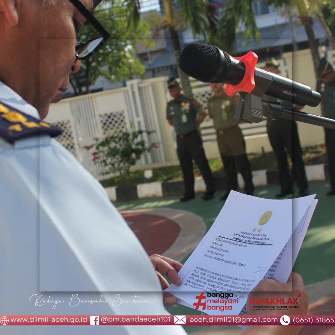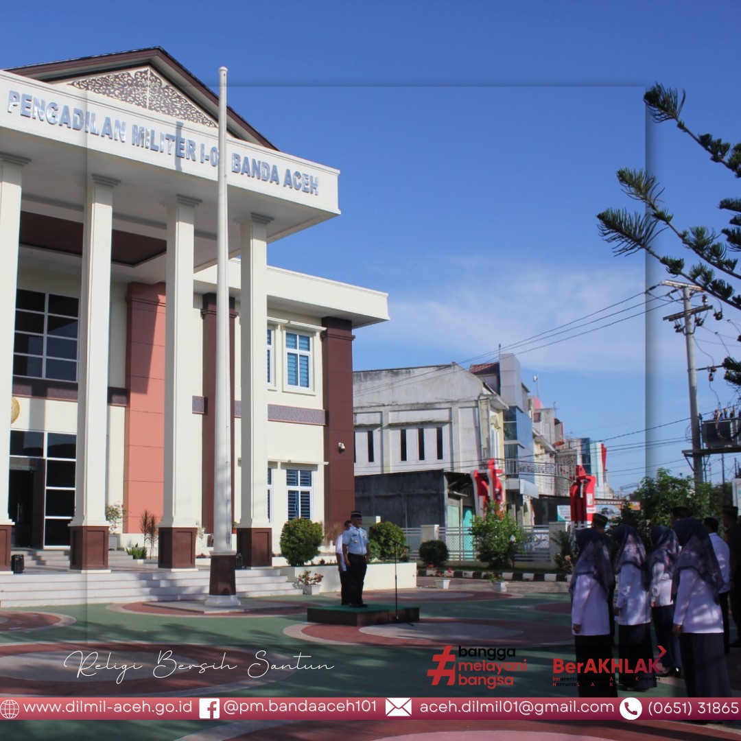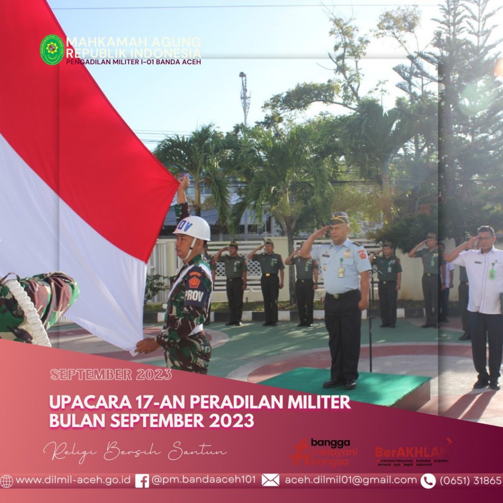 Banda Aceh – 18 September 2023. Pelaksanaan Upacara 17-an Peradilan Militer di Pengadilan Militer I-01 Banda Aceh yang diikuti oleh seluruh Personel dan Kepala Pengadilan Militer I-01 Banda Aceh, Letkol Kum M. Arif Zaki Ibrahim, S.H. bertindak sebagai Inspektur Upacara.