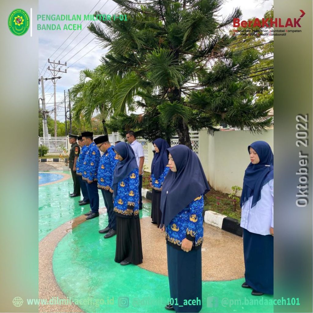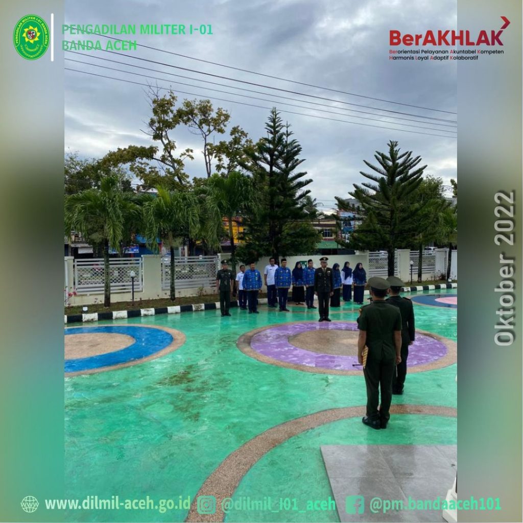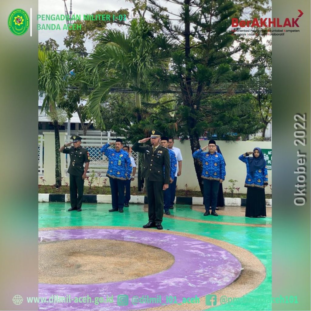 Banda Aceh – 1 Oktober 2022. Pengadilan Militer I-01 Banda Aceh melaksanakan upacara memperingati Hari Kesaktian Pancasila dengan Tema “Bangkit Bergerak Bersama Pancasila”, Kepala Pengadilan Militer I-01 Banda Aceh, Kolonel Chk Masykur, S.T., S.H., M.H. sebagai Inspektur Upacara yang dihadiri oleh seluruh anggota Pengadilan Militer I-01 Banda Aceh.