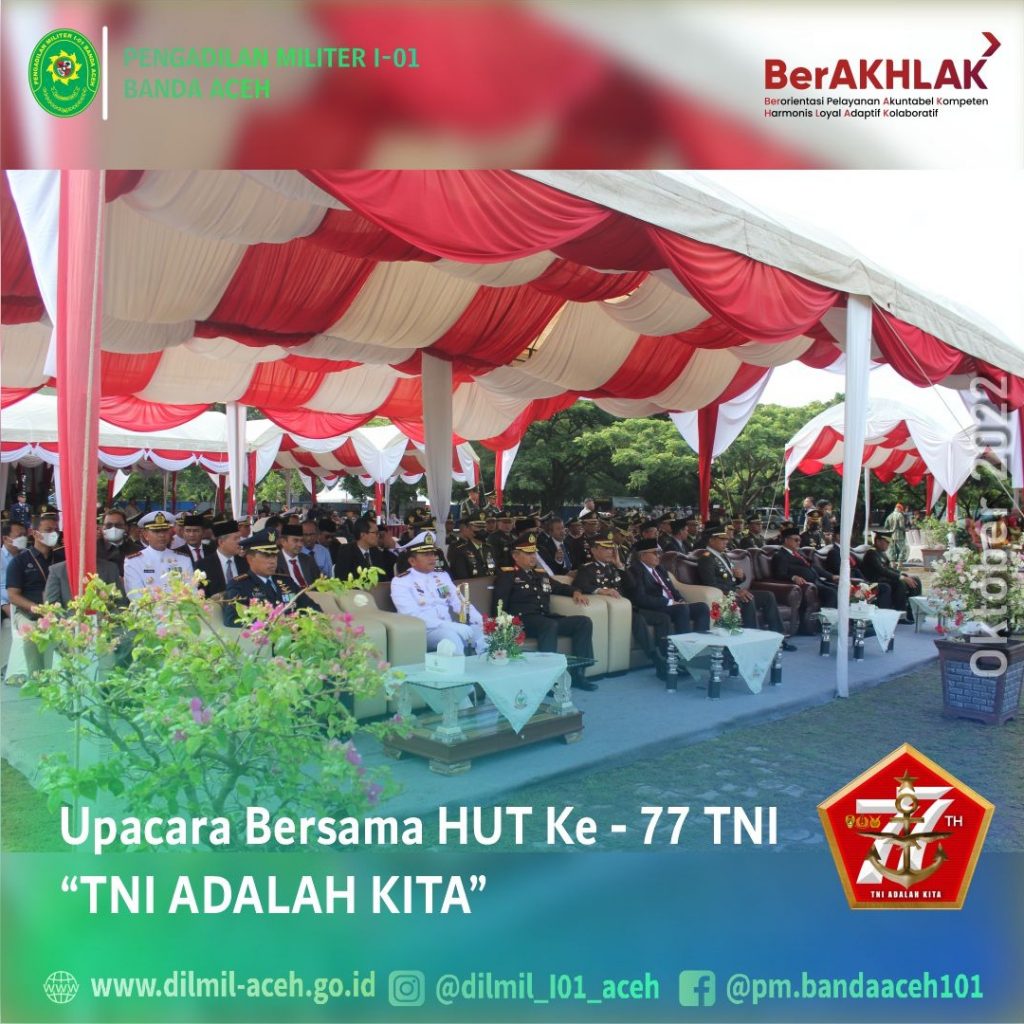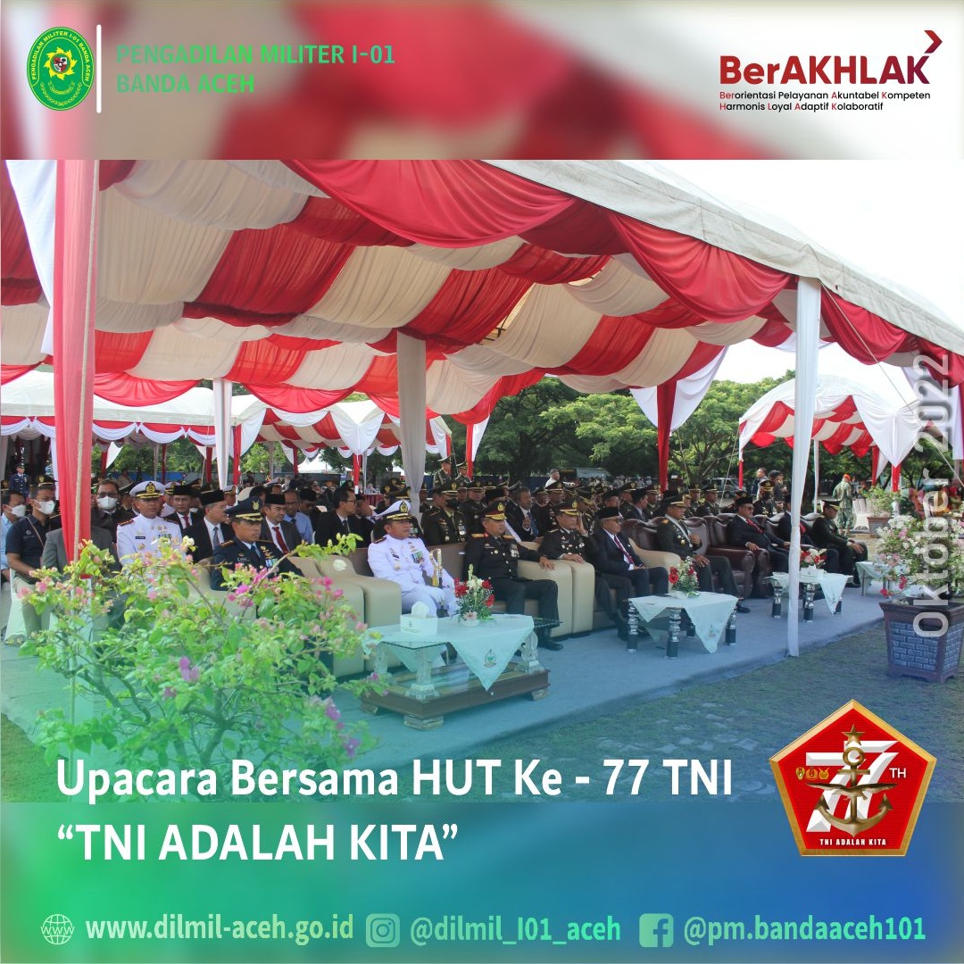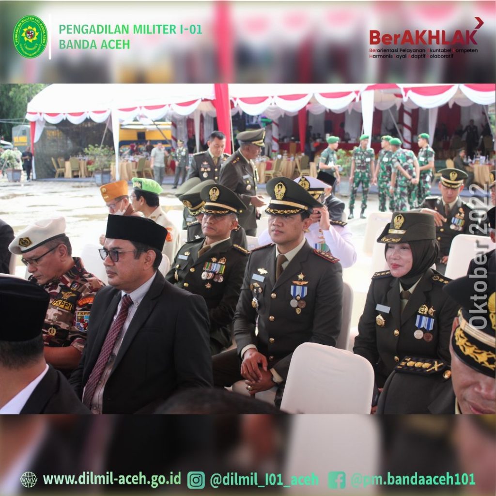 Banda Aceh – 5 Oktober 2022. Kepala Pengadilan Militer I-01 Banda Aceh, Kolonel Chk Masykur, S.T., S.H., M.H., menghadiri upacara Hari Ulang Tahun (HUT) ke-77 Tentara Nasional Indonesia (TNI) di Lapangan Blang Padang Banda Aceh.