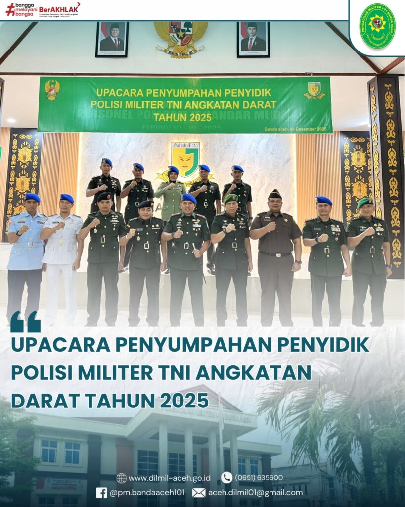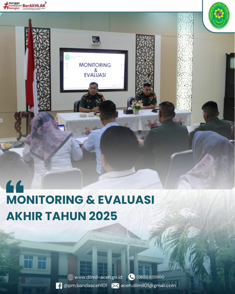 Banda Aceh – 15 Desember 2025. Kepala Pengadilan Militer I-01 Banda Aceh, Kolonel Chk Khamdan, S.Ag., S.H., M.H., didampingi oleh Wakil Kepala Pengadilan, Letkol Chk Arif Sudibya, S.H.,M.H. memimpin kegiatan Monitoring dan Evaluasi (Monev) bersama seluruh unsur pimpinan, hakim, pejabat kepaniteraan, kesekretariatan, serta aparatur peradilan. Dalam arahannya, Kadilmil menekankan beberapa poin penting:
